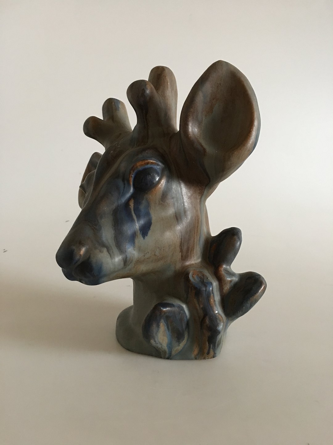 Deer Head in Stoneware by Arne Ingdam. 21.5 cm H (8 15/32"). 20 cm W (7 7/8")