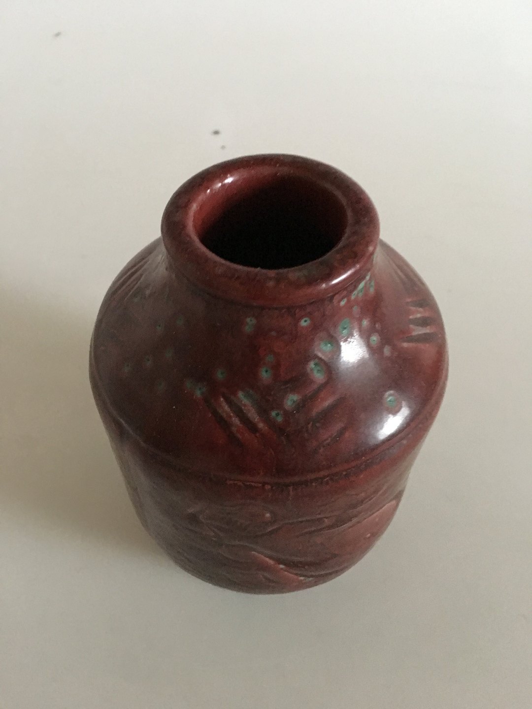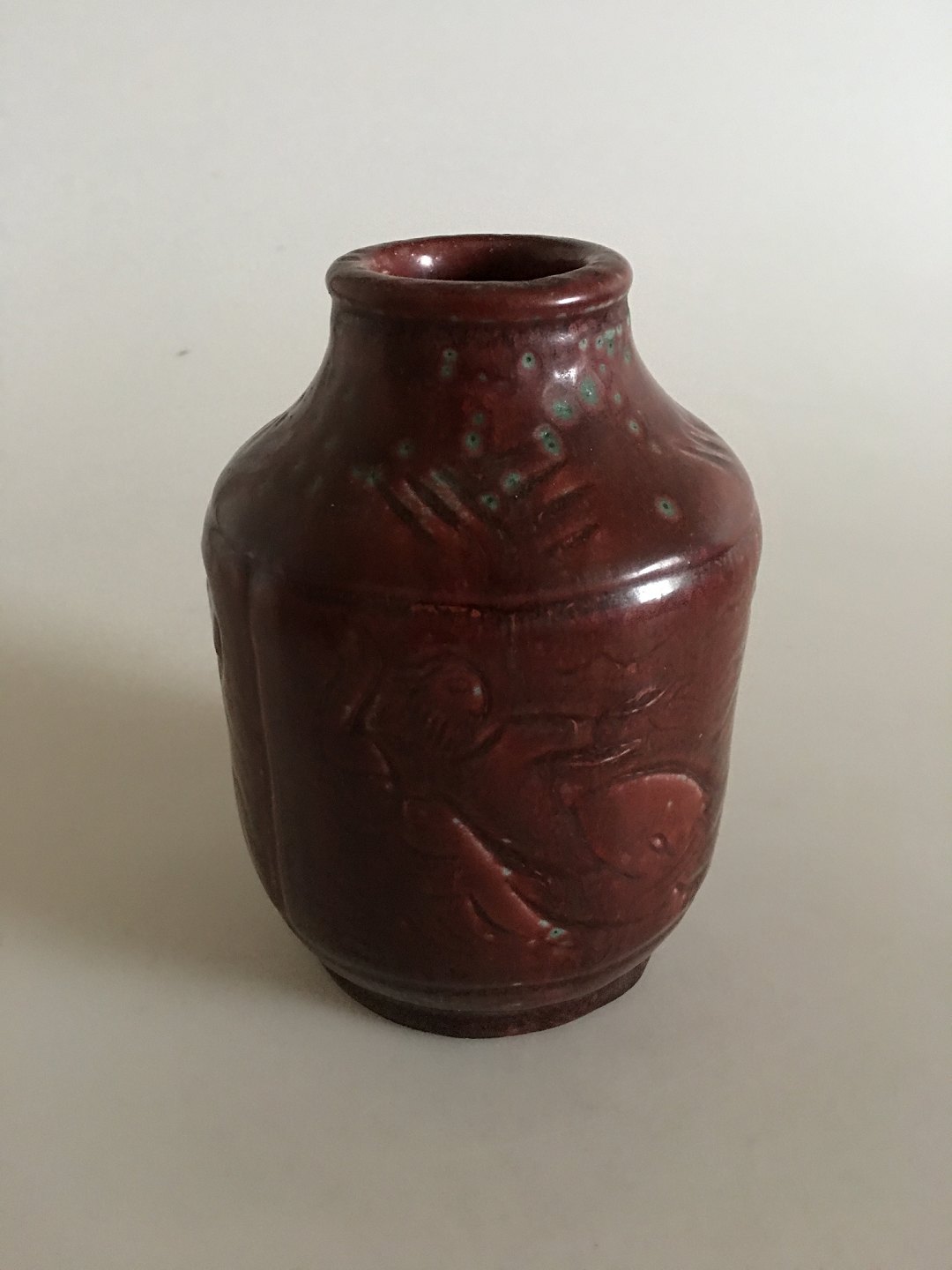Royal Copenhagen Jais Nielsen Vase No 2370. "Jonas and the Whale". 14.5 cm H (5 45/64"). In perfect condition. 1st Quality.