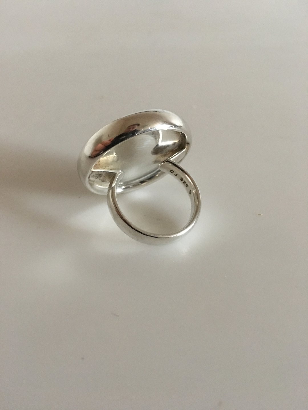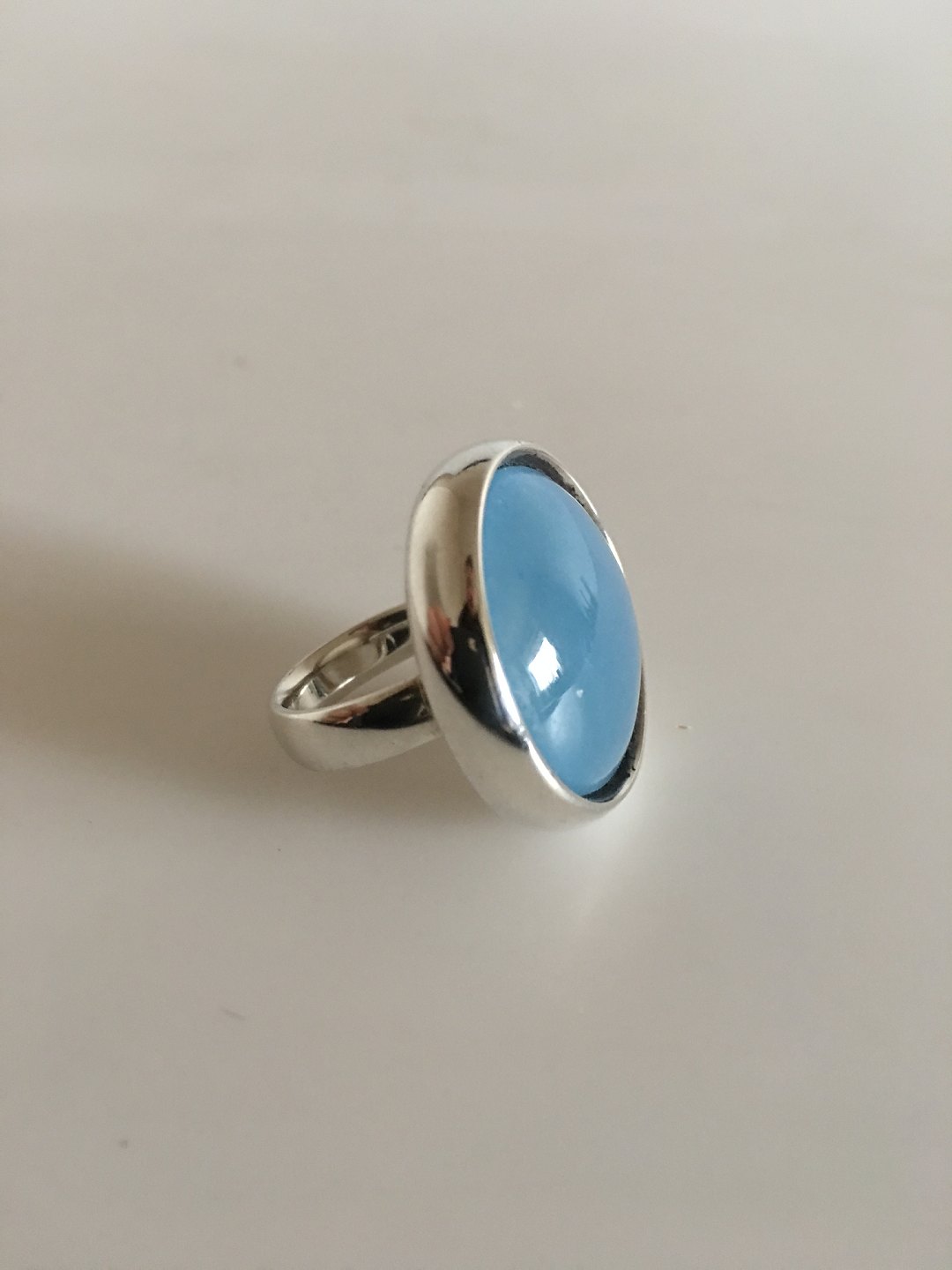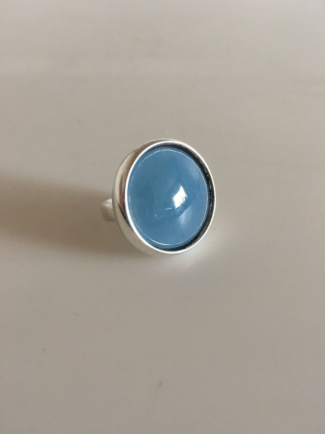 Georg Jensen Sterling Silver Ring No. 466 with Blue Quartz. Measures Ring Size 59 (US size 8 3/4). Ornament measures 2.7 cm diameter (1.06 inch). Weight 20.7 grams (0.73 oz). Designed by Regitze Overgaard.