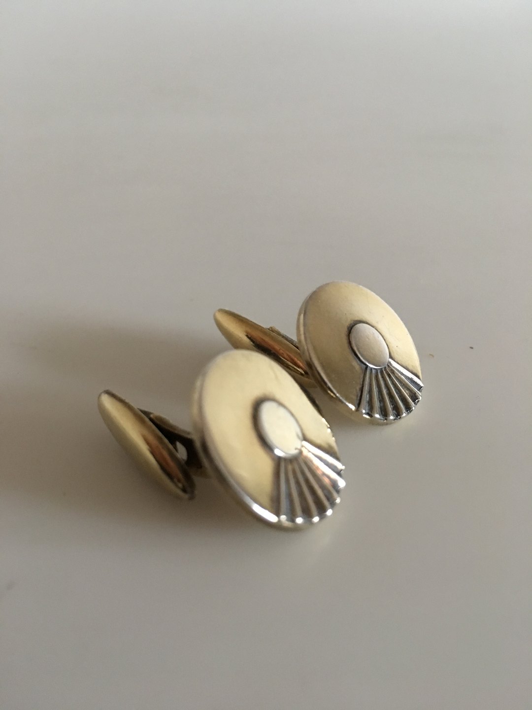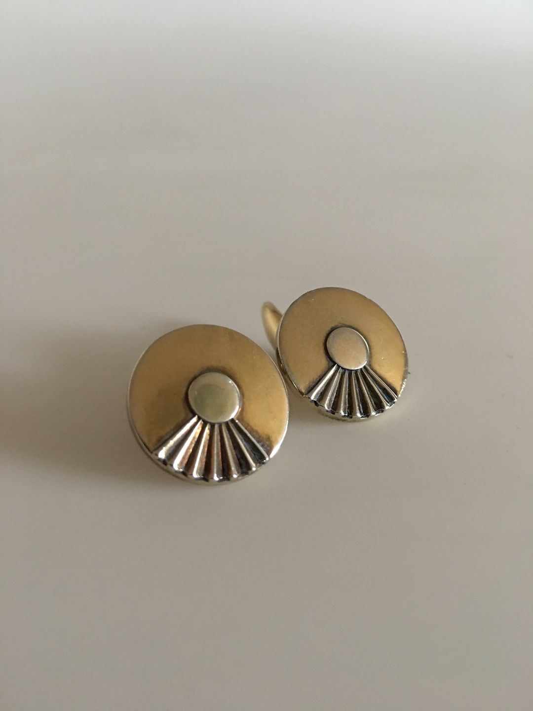 Hans Hansen Cufflinks in Gilded Silver. Measures 1.5 cm in diameter / 0 19/32 in. Combined weight of 15 g / 0.55 oz.