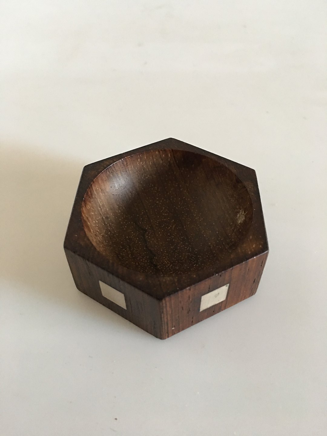 Hans Hansen Saltdish in Rosewood with Sterling Silver. In nice condition. Measures 6 cm / 2 23/64 in. x 2.1 cm / 0 25/32 in.