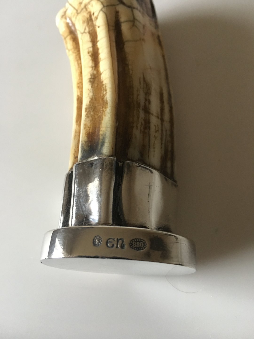 Evald Nielsen Signet Stamp in Silver with Hippopotamus Tooth. 3.5 cm dia (1 3/8"). 10 cm H (3 15/16")