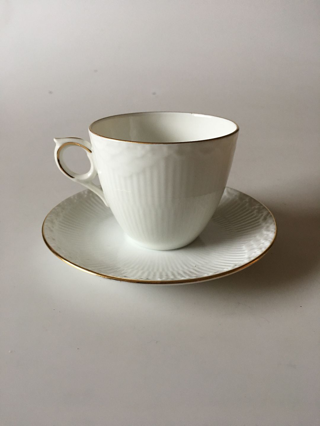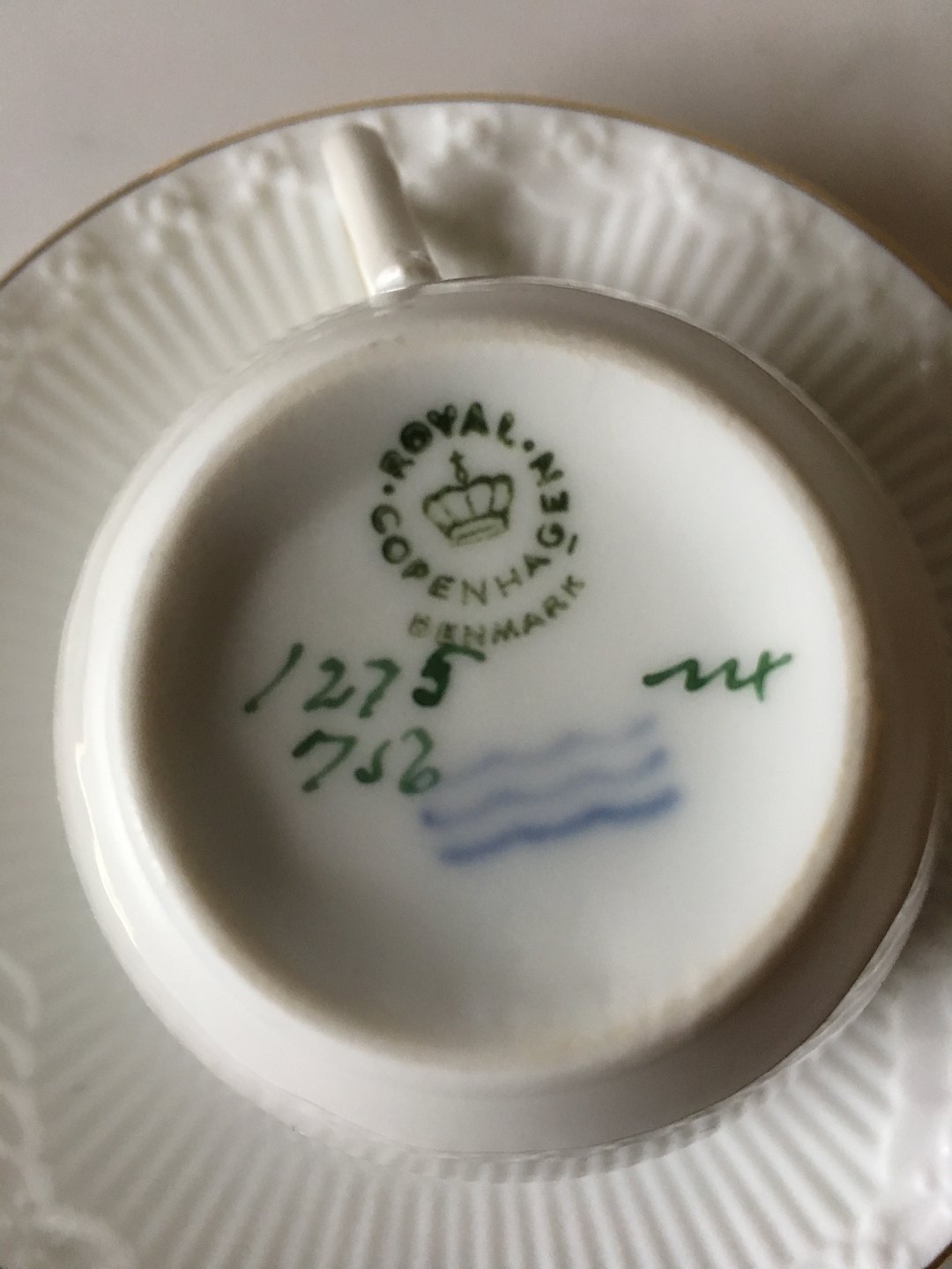 Royal Copenhagen Tradition White Half Lace Coffee Cup and Saucer No 1275/756. Cup measures 6.5 x 7.5 cm (2 9/16 in. x 2 61/64 in.)