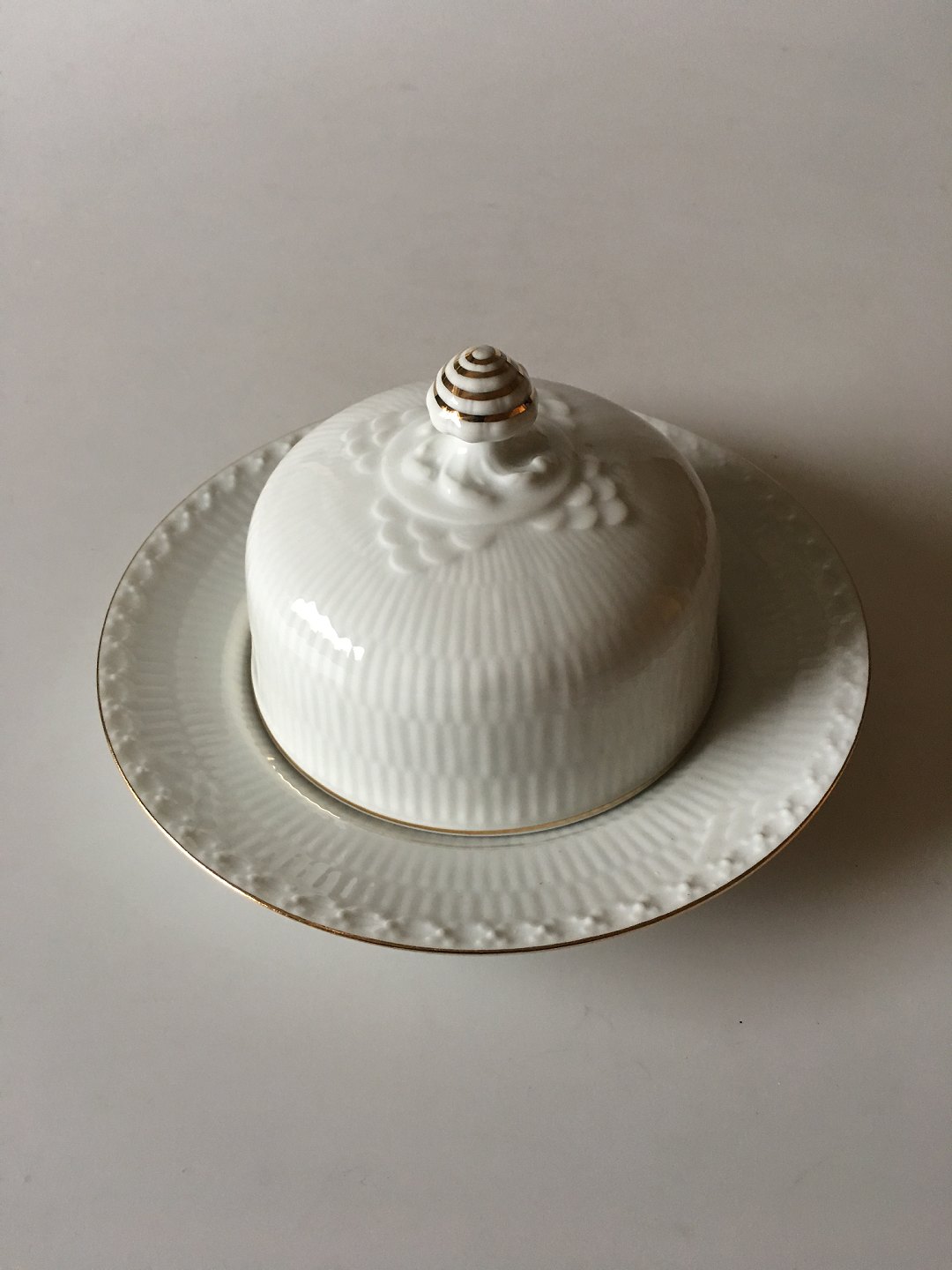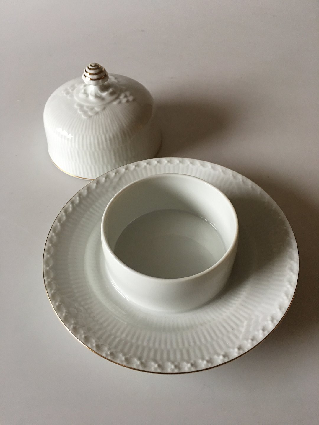 Royal Copenhagen Tradition White Half Lace w. Gold Caviar Bowl / Butter Bowl No 1275/502. 17 cm dia (6 11/16"). In perfect condition.