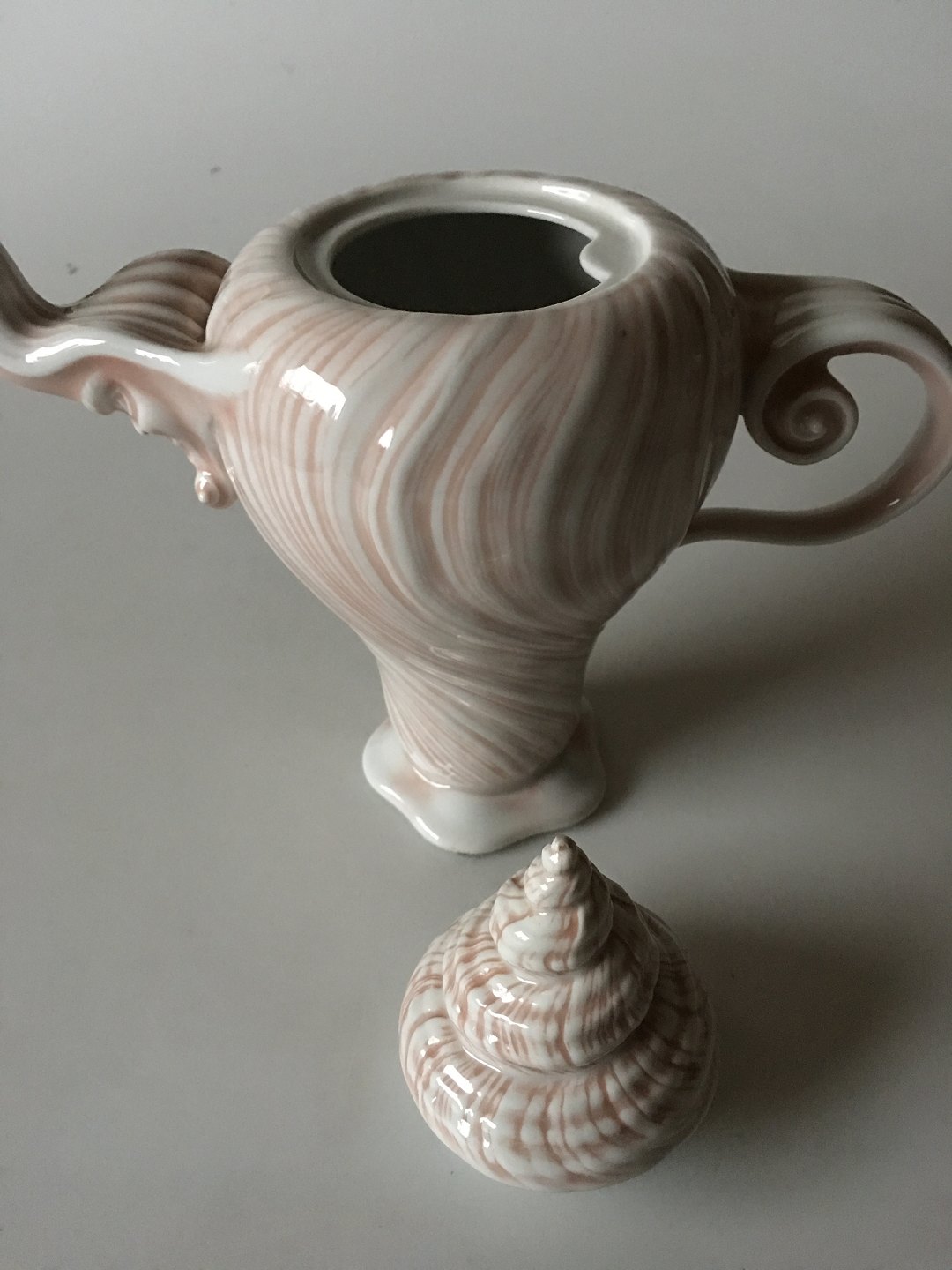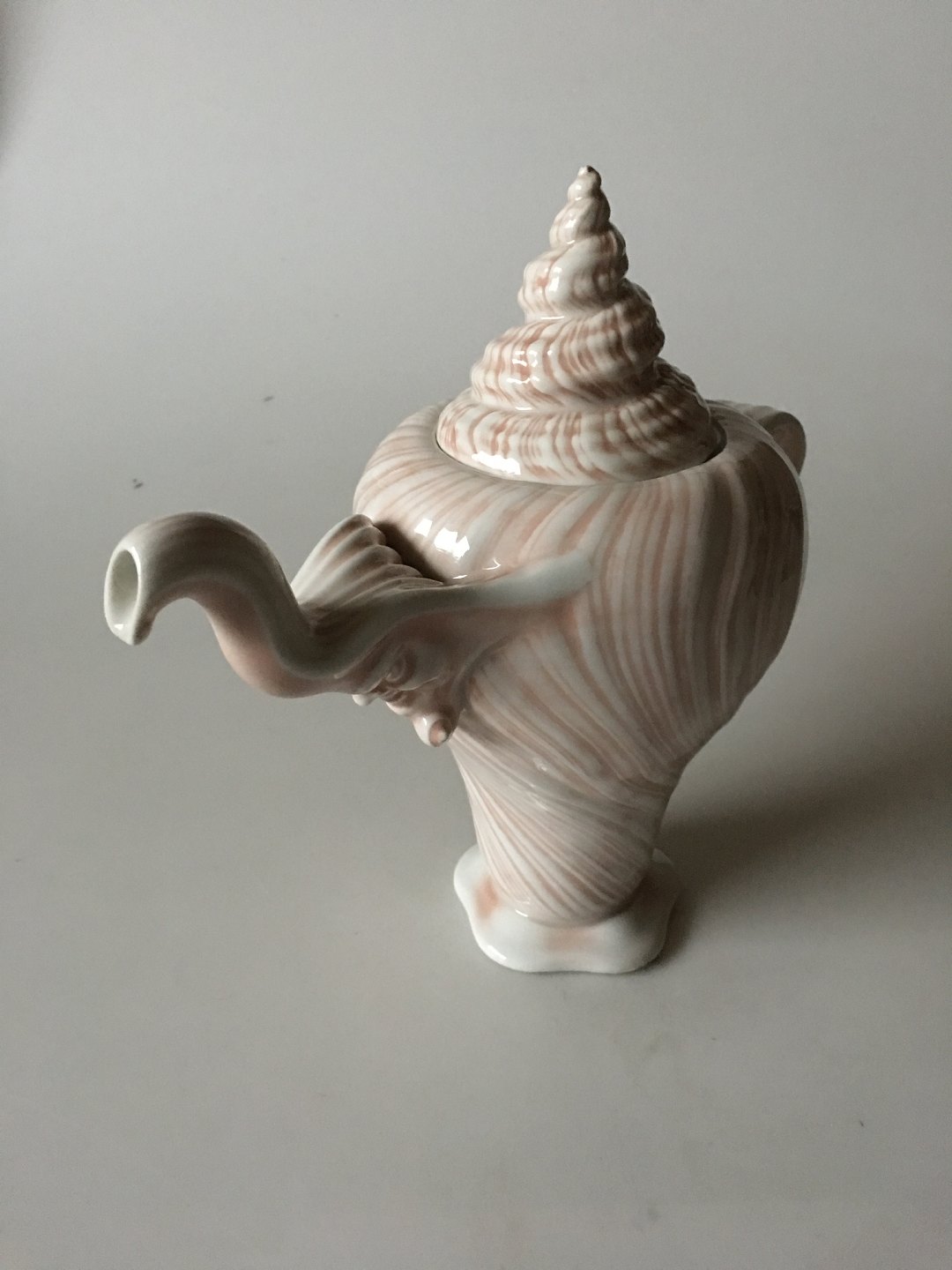 Royal Copenhagen Rosa Konkylie Kaffekande No 14181. Designet af Arje Griegst. Måler 23 cm H. I perfekt stand.