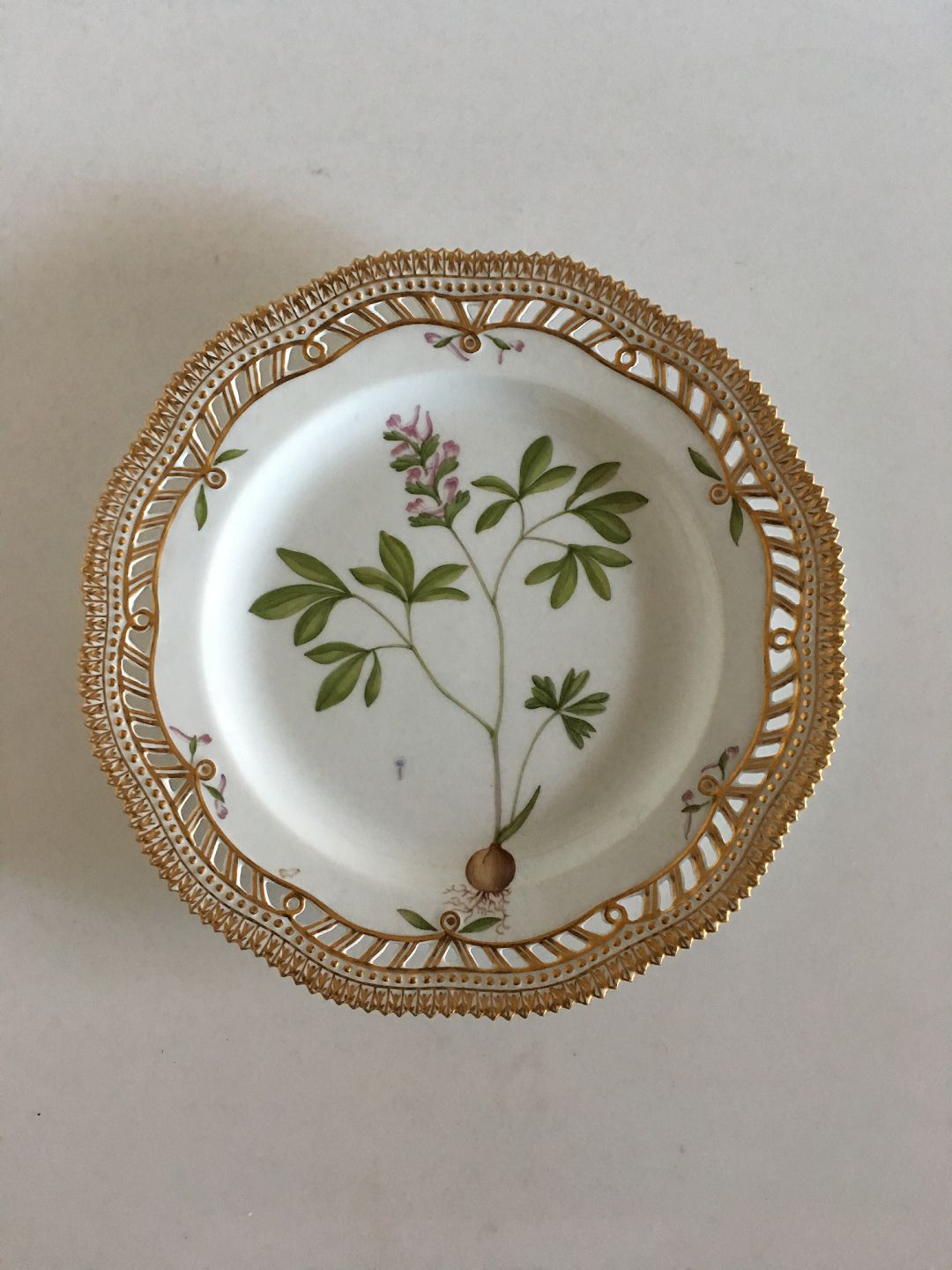 Royal Copenhagen Flora Danica Frokosttallerken No 20/3554 med Gennembrudt Kant. Latinsk Navn: Corydalis Pumila. 23 cm. 1. Sort. I perfekt stand.