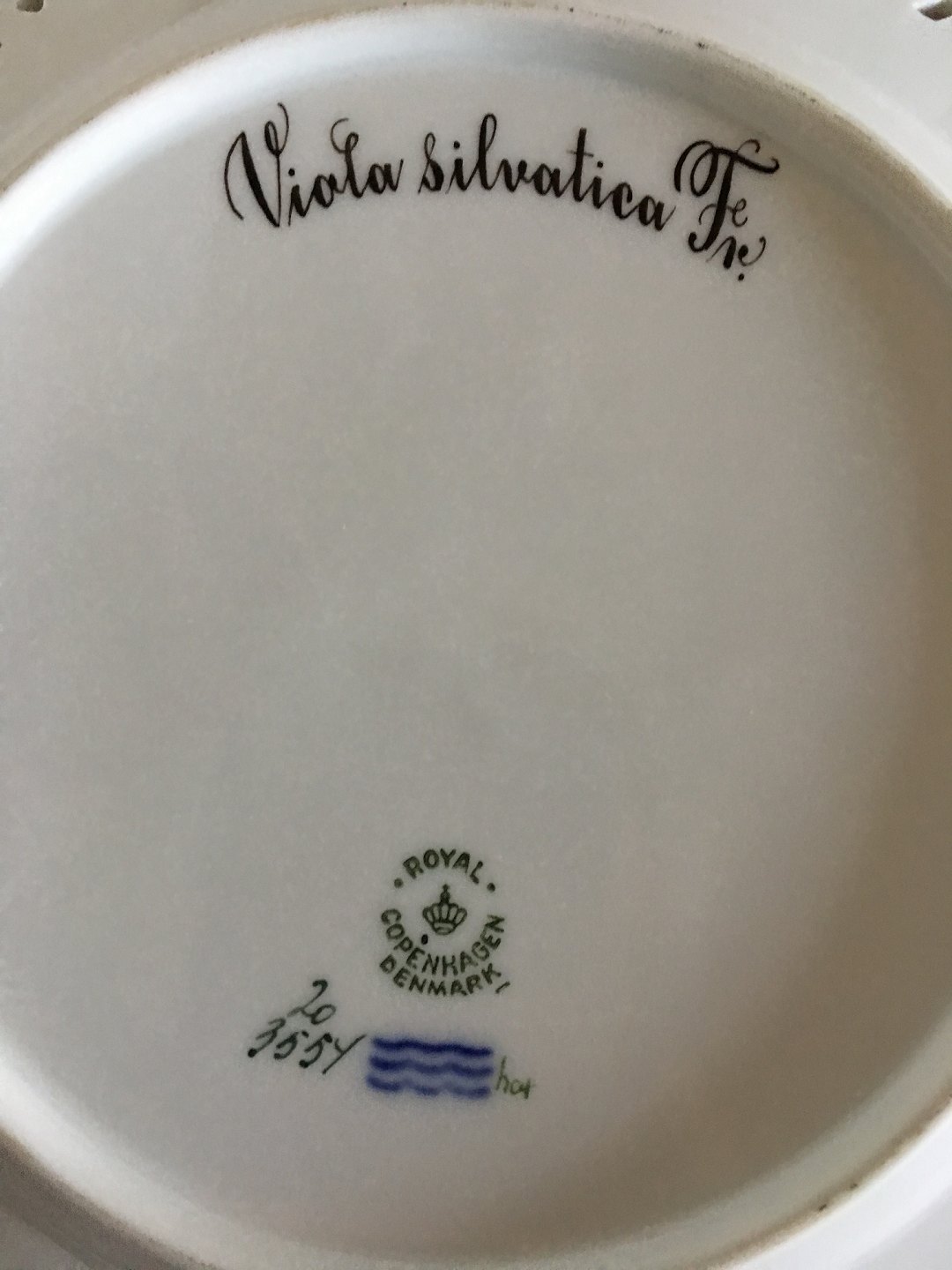 Royal Copenhagen Flora Danica Luncheon Plate No 20/3554 with Pierced Border. Latin Name: Viola Silvatica. 23 cm (9 1/16"). 1st Quality. In perfect condition.