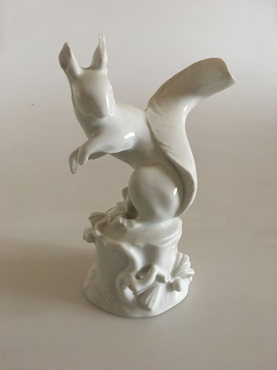 Meissen Egern Figurine i Hvidt Porcelæn . 13.5 cm Høj. Har skår på begge ørespidser.