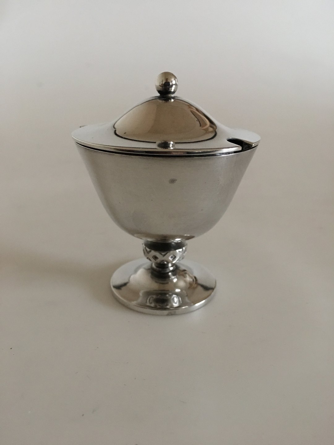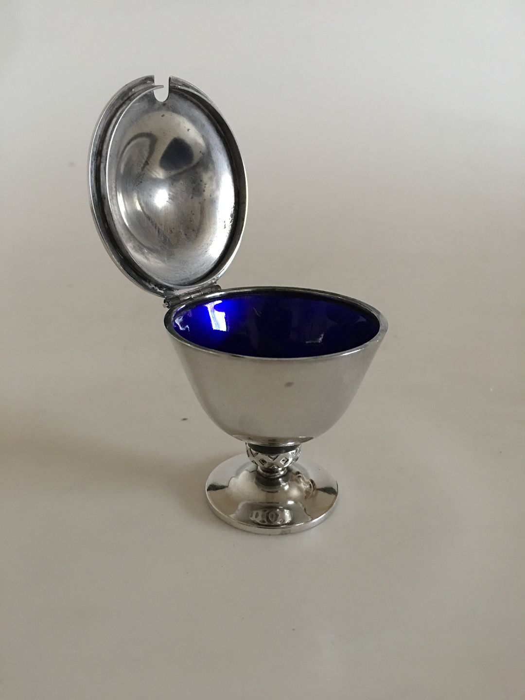 Georg Jensen Sterling Sølv Johan Rohde Rune Sennepsbæger No 876 med Blå Emalje. 7 cm Høj. 5.5 cm Ø. Vejer 83 gram. Stemplet Georg Jensen & Wendel fra 1945-1951. I fin stand.