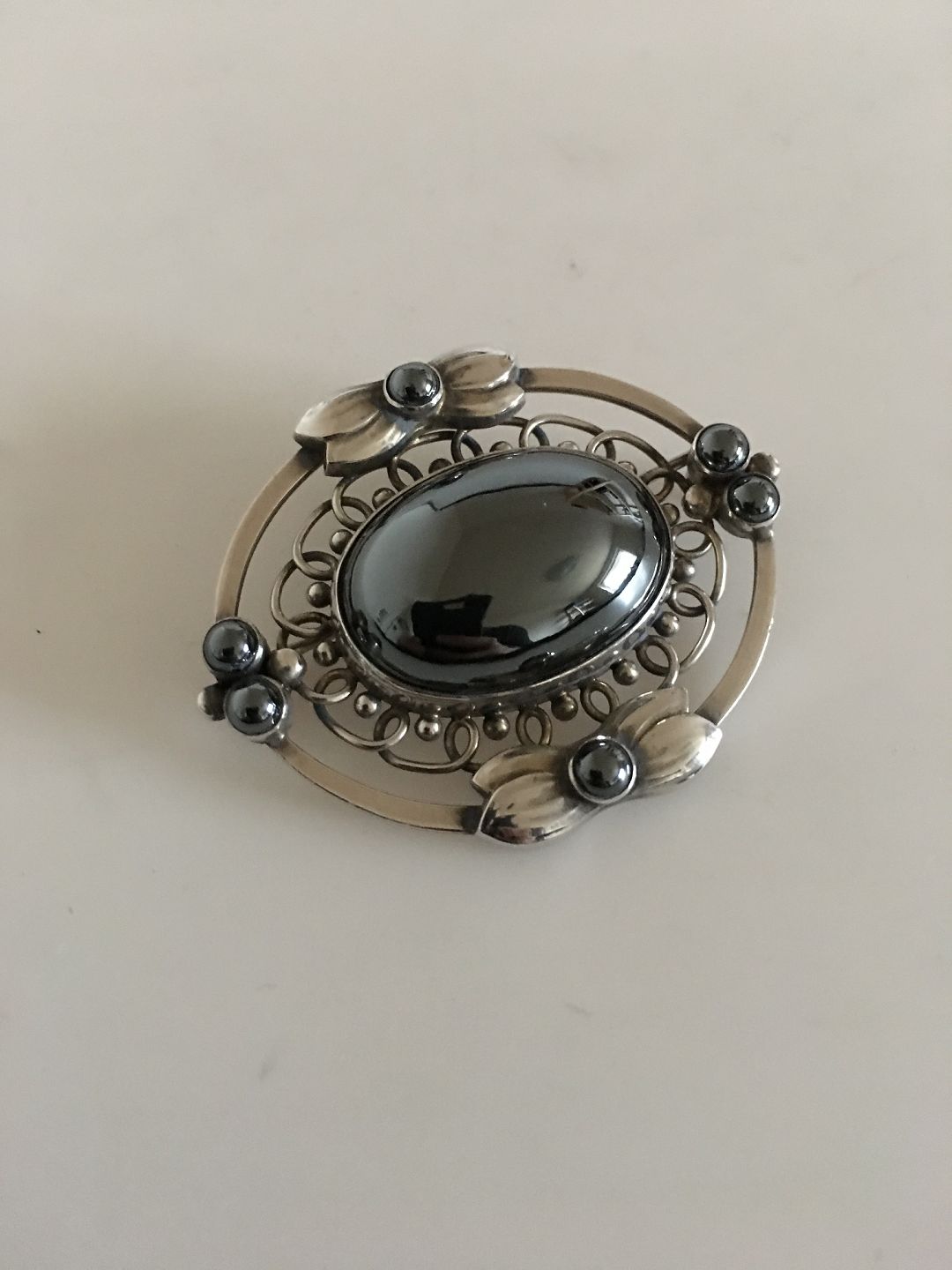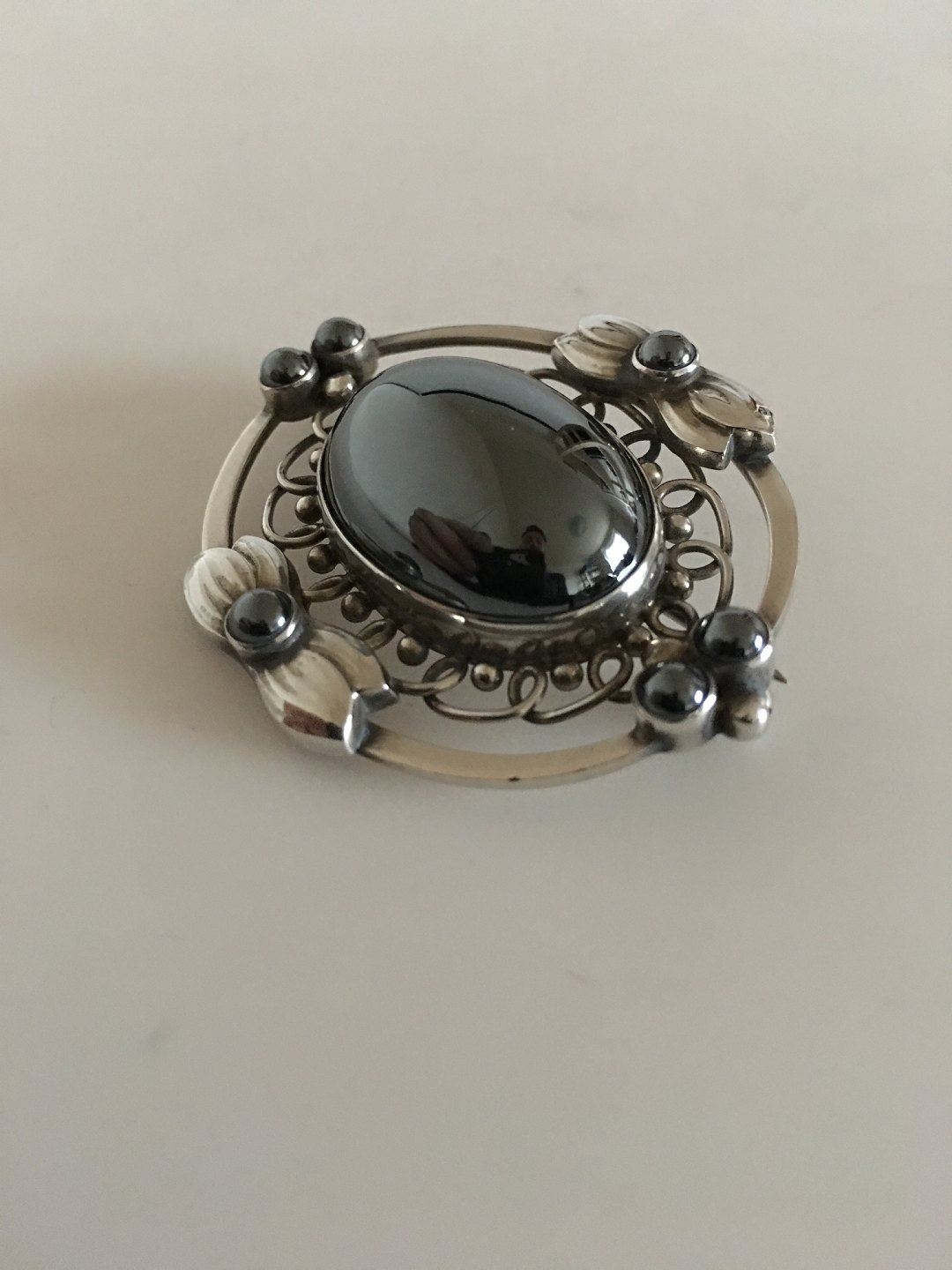 Georg Jensen Sterling Sølv Broche No 91 prydet med Hæmatit Sten. Måler 5 cm x 4 cm. Vejer 23 gram. Fra efter 1945.
