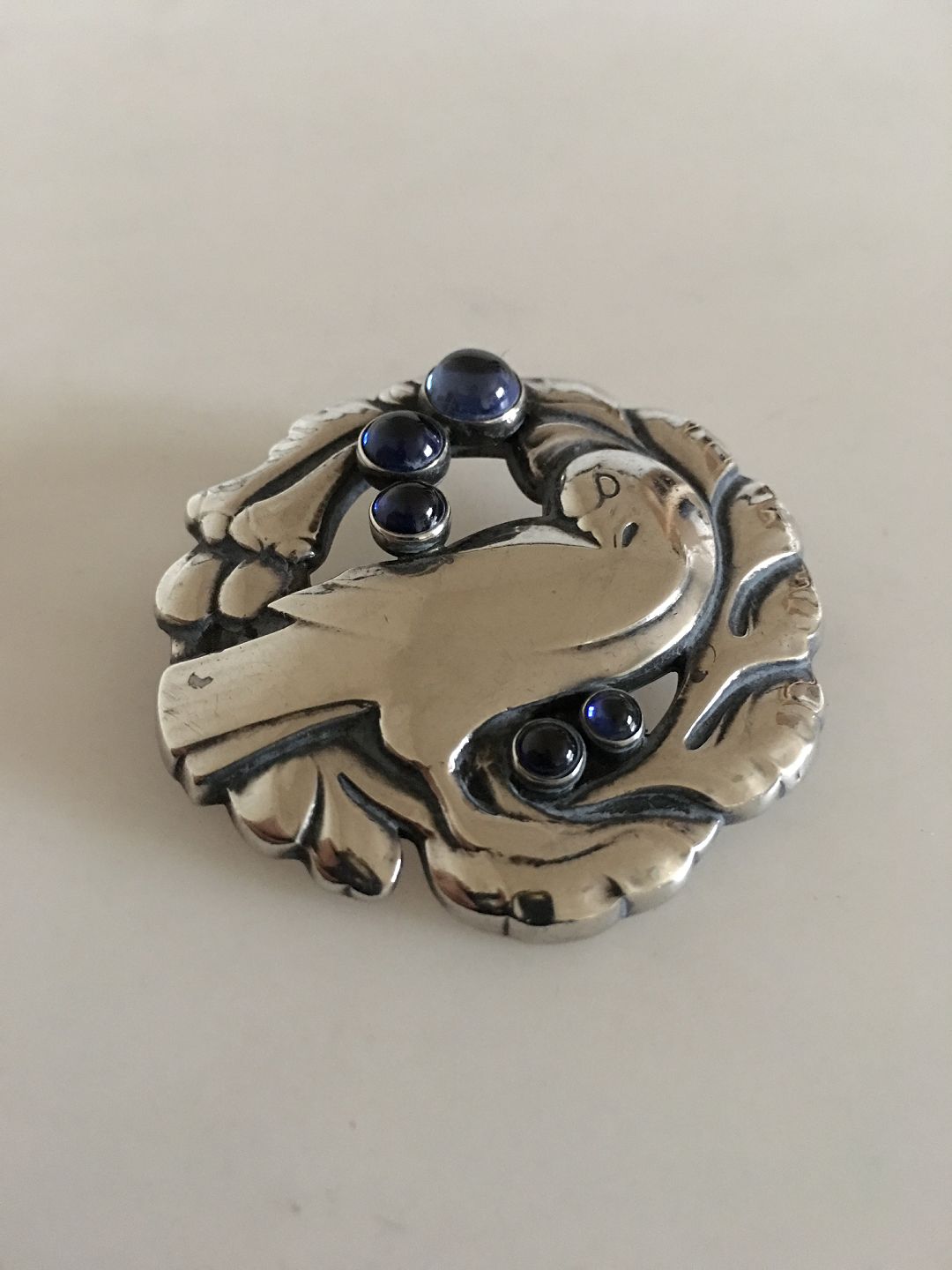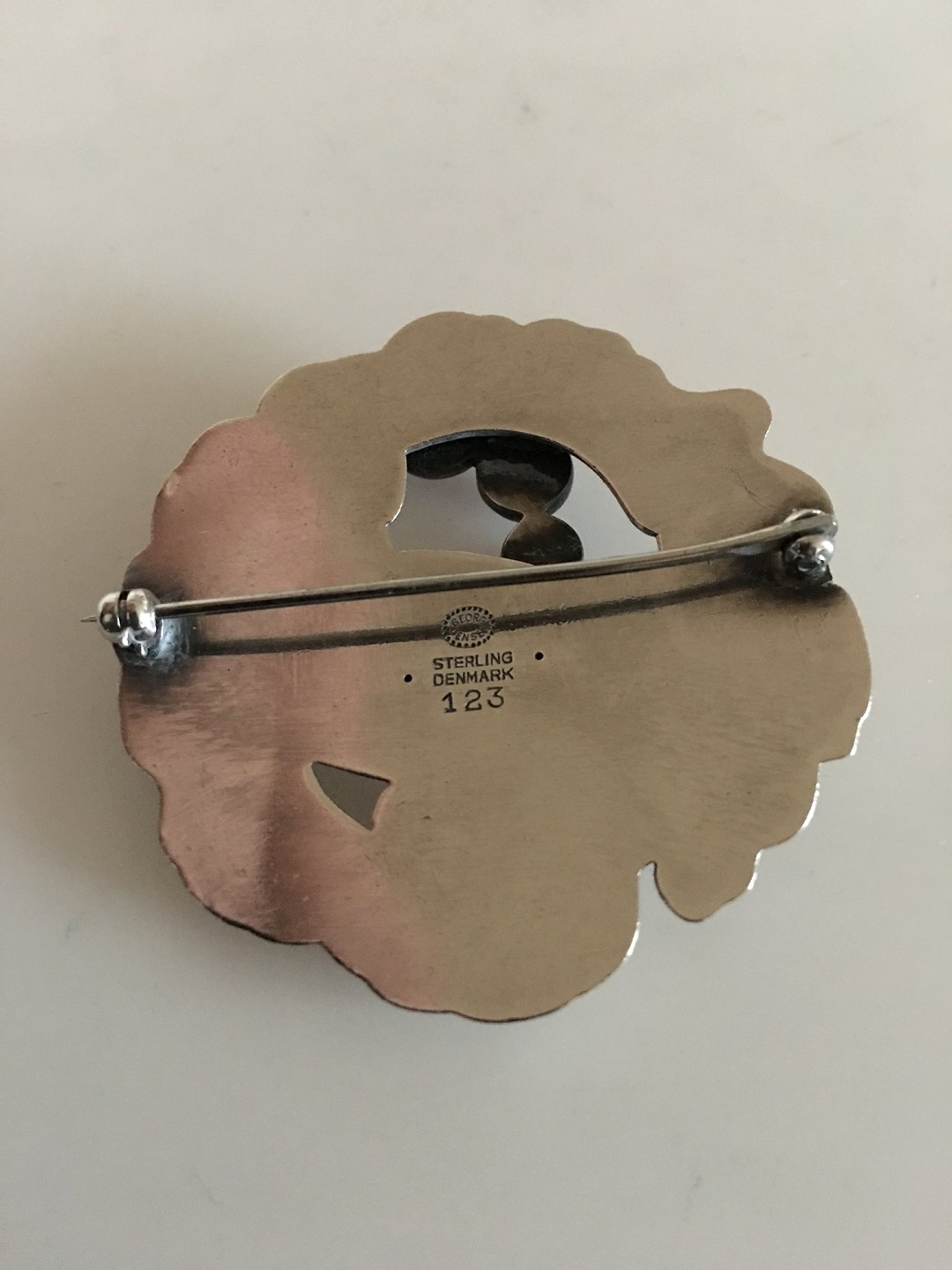 Georg Jensen Sterling Sølv Broche med No 123 med Syntetisk Safir. Måler 4,5 cm Ø. Vejer 17 gram. Fra efter 1945.