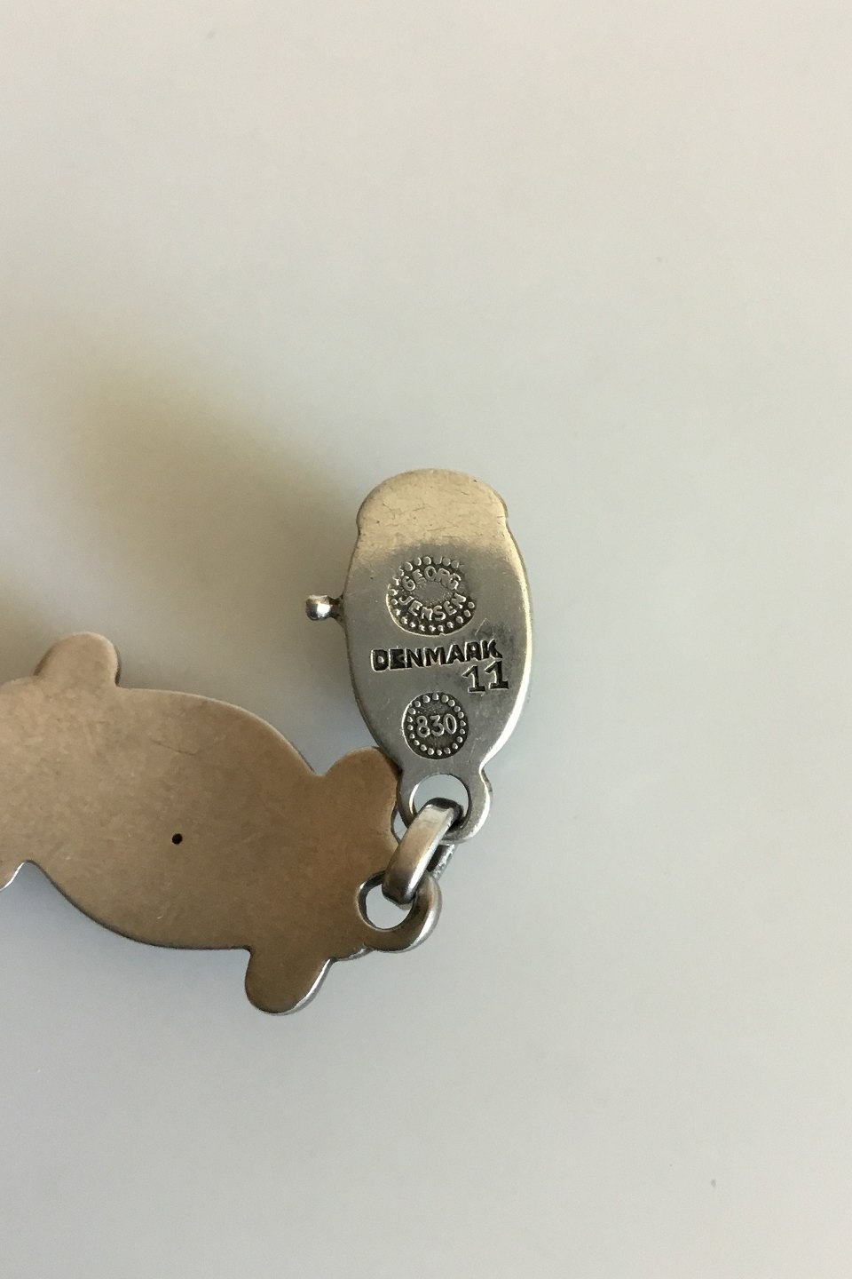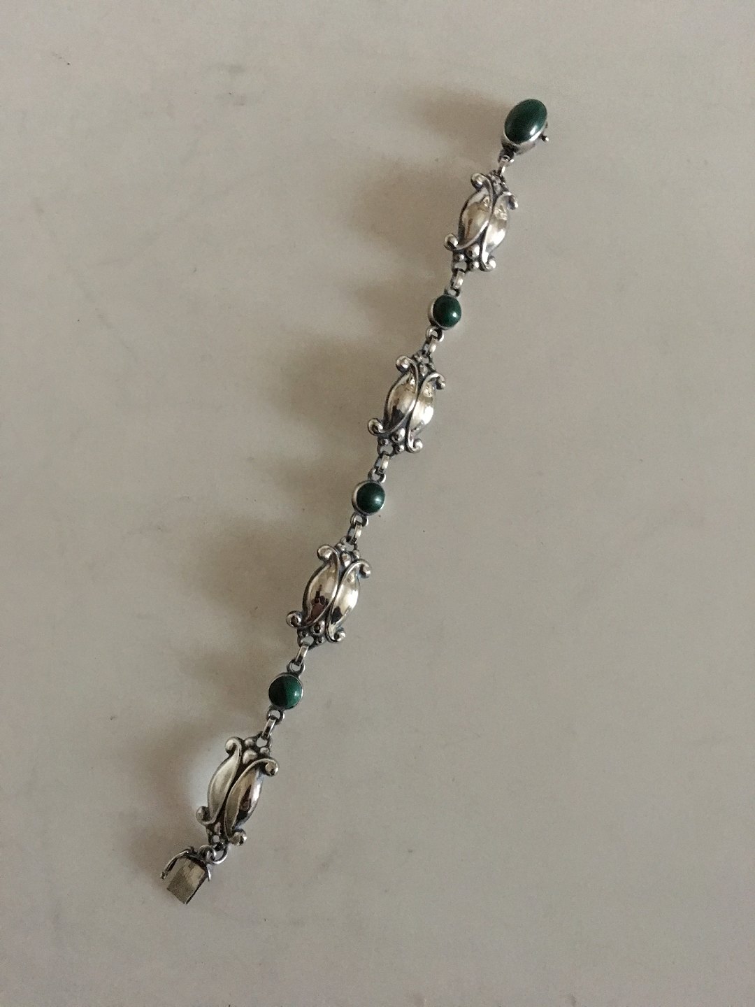 Georg Jensen Sterling Silver Bracelet No 11 with Green Stones. Measures 18.5 cm / 7 9/32 in. Weighs 17 g / 0.60 oz. With early Jensen marks.