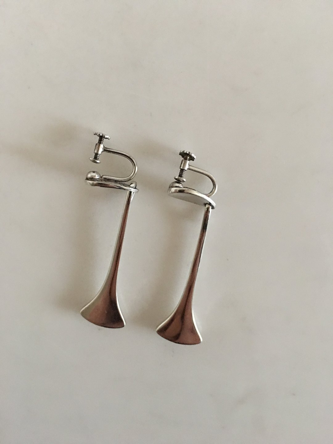 Hans Hansen Sterling Sølv Øreringe No 444. Øreskruer. Måler 6 cm. Vejer tilsammen 15 gram. I fin stand.