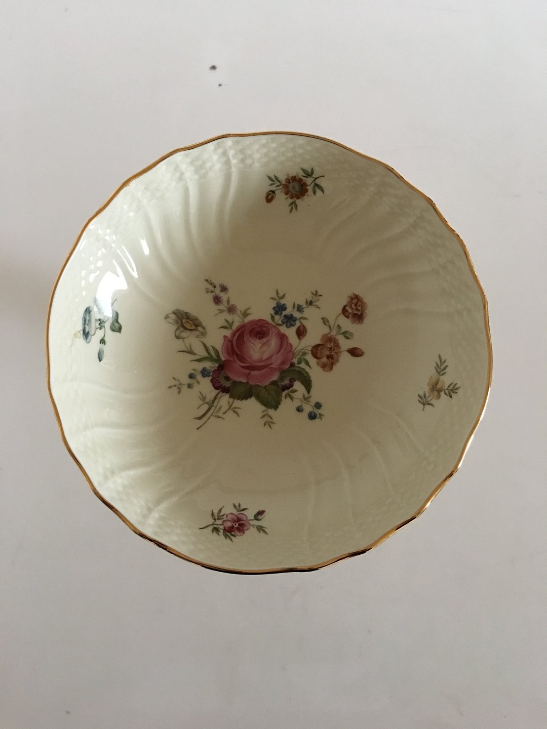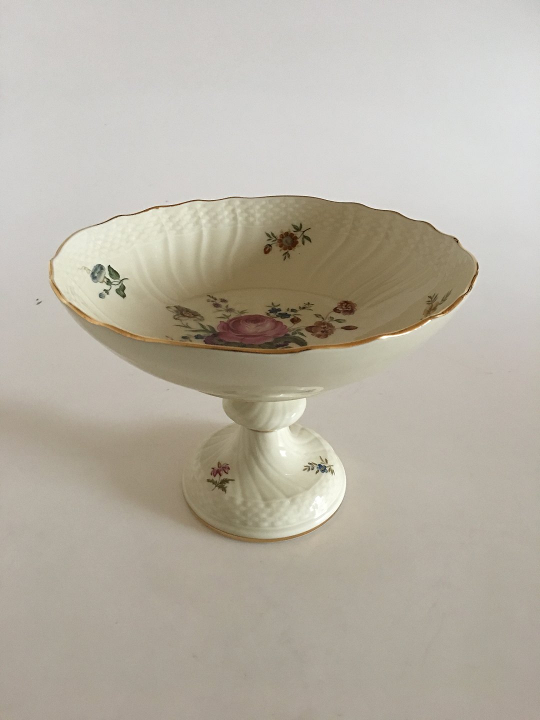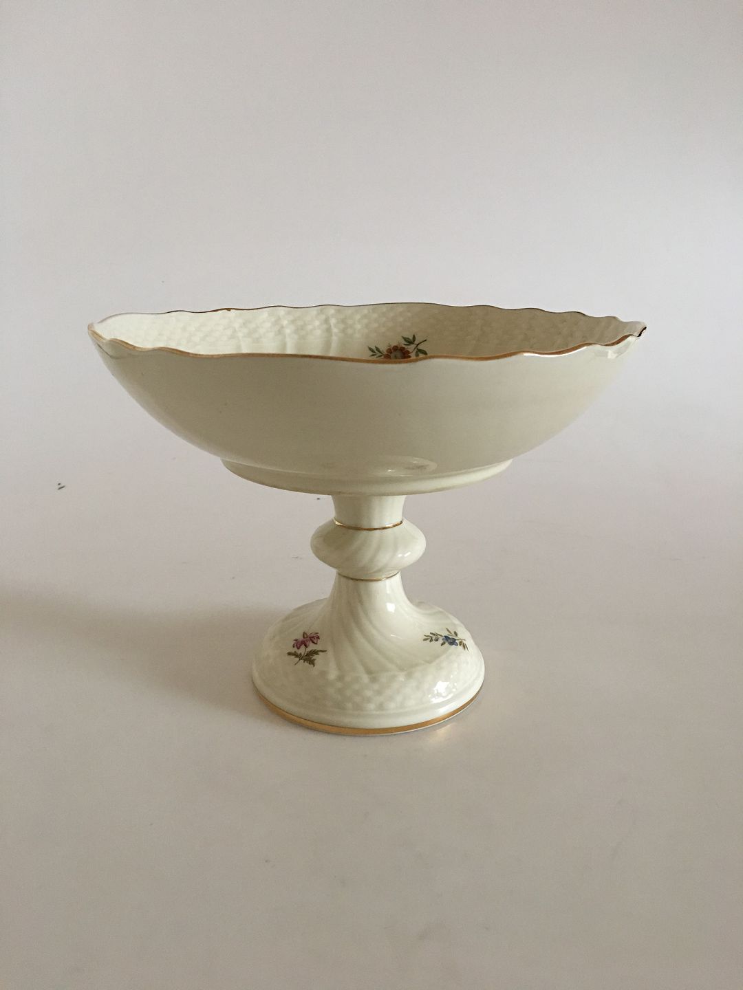 Royal Copenhagen Frijsenborg Kageskål på Høj Fod No 1528. 15.5 cm Høj. 21 cm Ø. I perfekt stand. Cremefarvet stel med blomstermotiver opkaldt efter godset Frijsenborg.