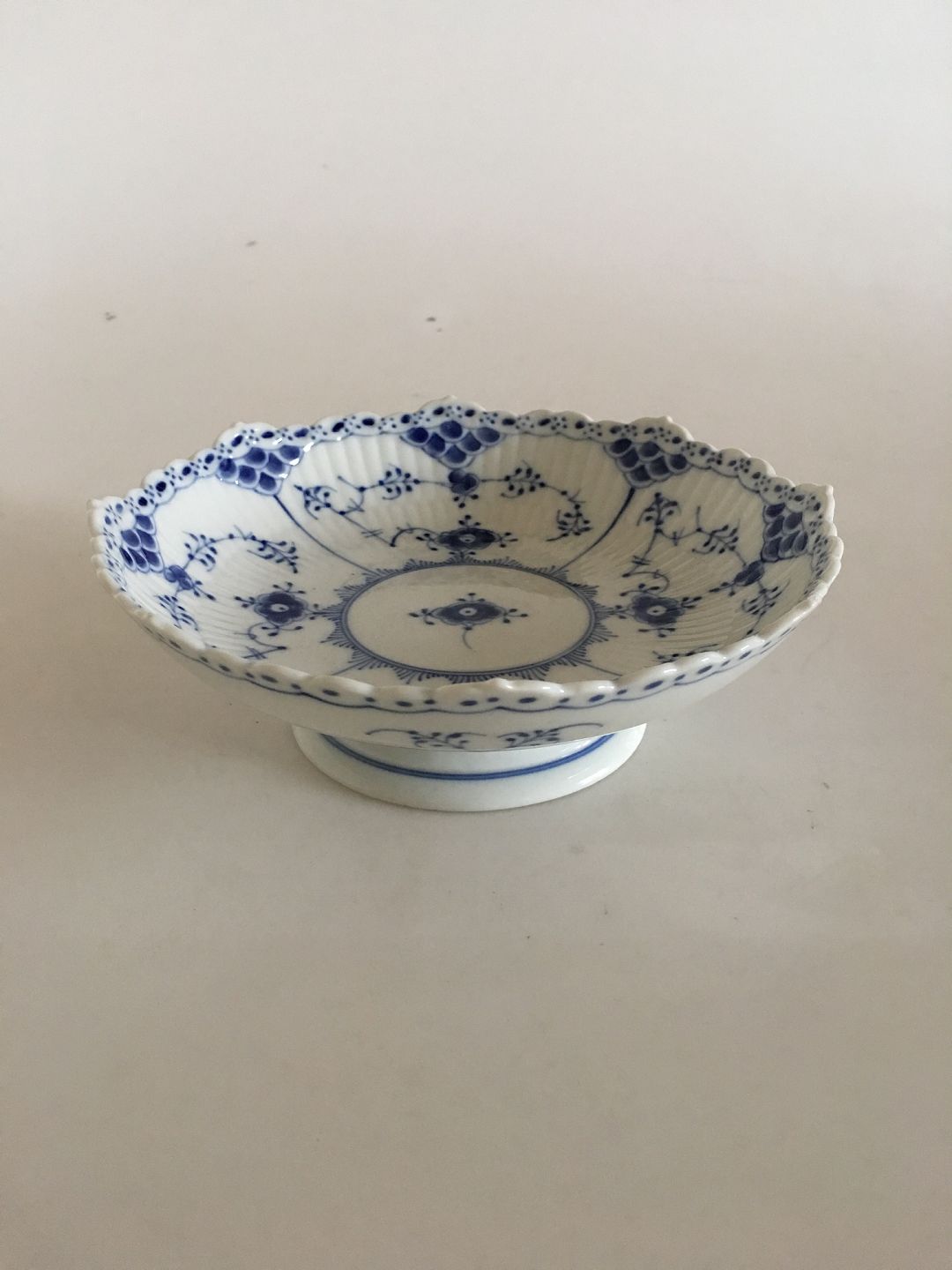 Royal Copenhagen Blue Fluted Half Laced Cake Bowl on Short Foot No 511. 6 cm H (2 23/64"). 17.5 cm dia (6 57/64"). 1st Quality.