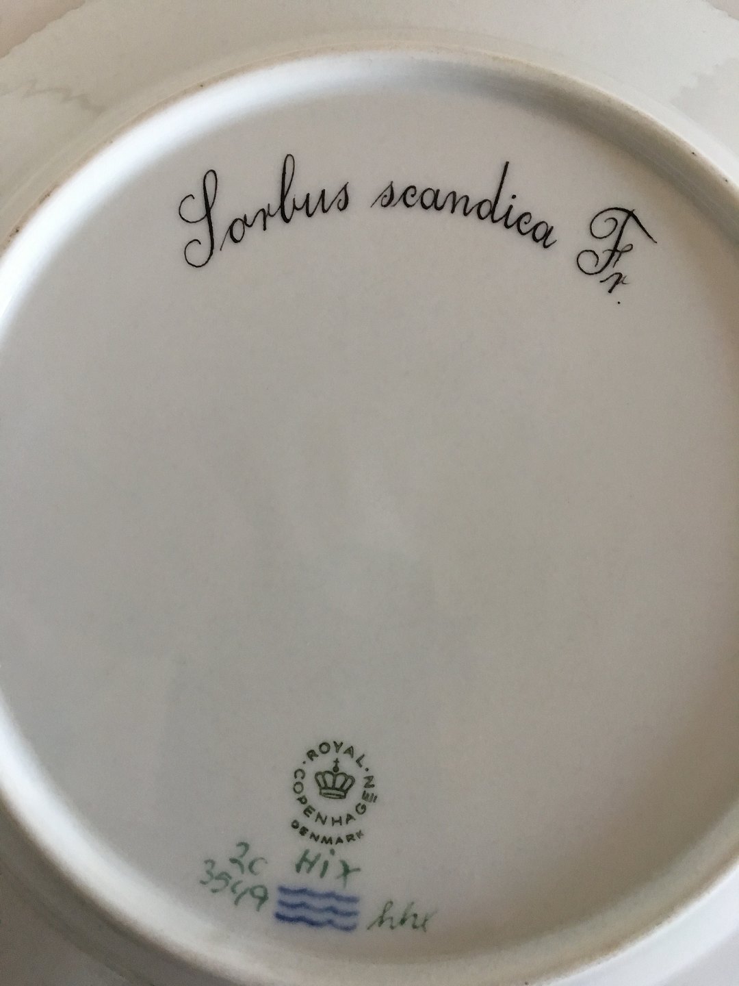 Royal Copenhagen Flora Danica Dinner Plate No 3549. 25.5 cm dia (10 3/64"). 1st Quality. In perfect condition. Latin Name: Sorbus Scandica Fr.