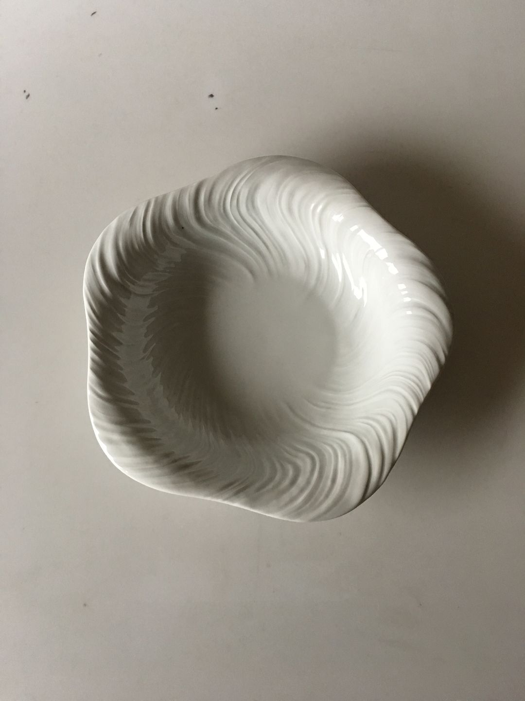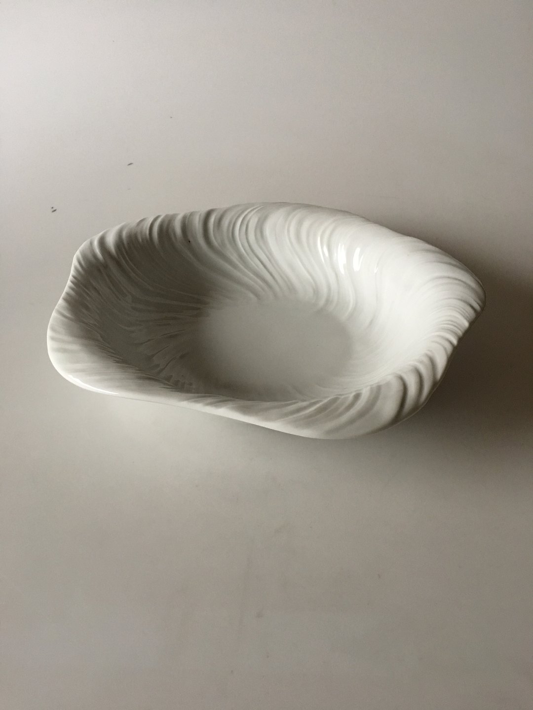 Royal Copenhagen Hvid Konkylie Serveringsskål No 14197/578. Måler 30 cm Ø x 6 cm H. I fin hel stand. Designet af Arje Griegst