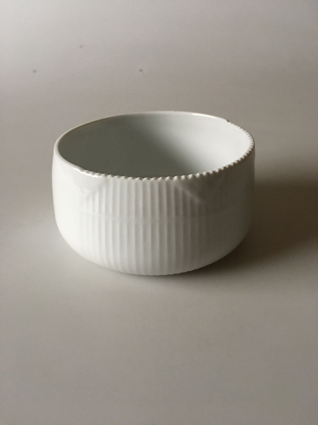 Royal Copenhagen White Elements Bowl No 574. 11.5 cm dia (4 17/32"). 6 cm H (2 23/64"). 2nd Quality. In nice whole condition.