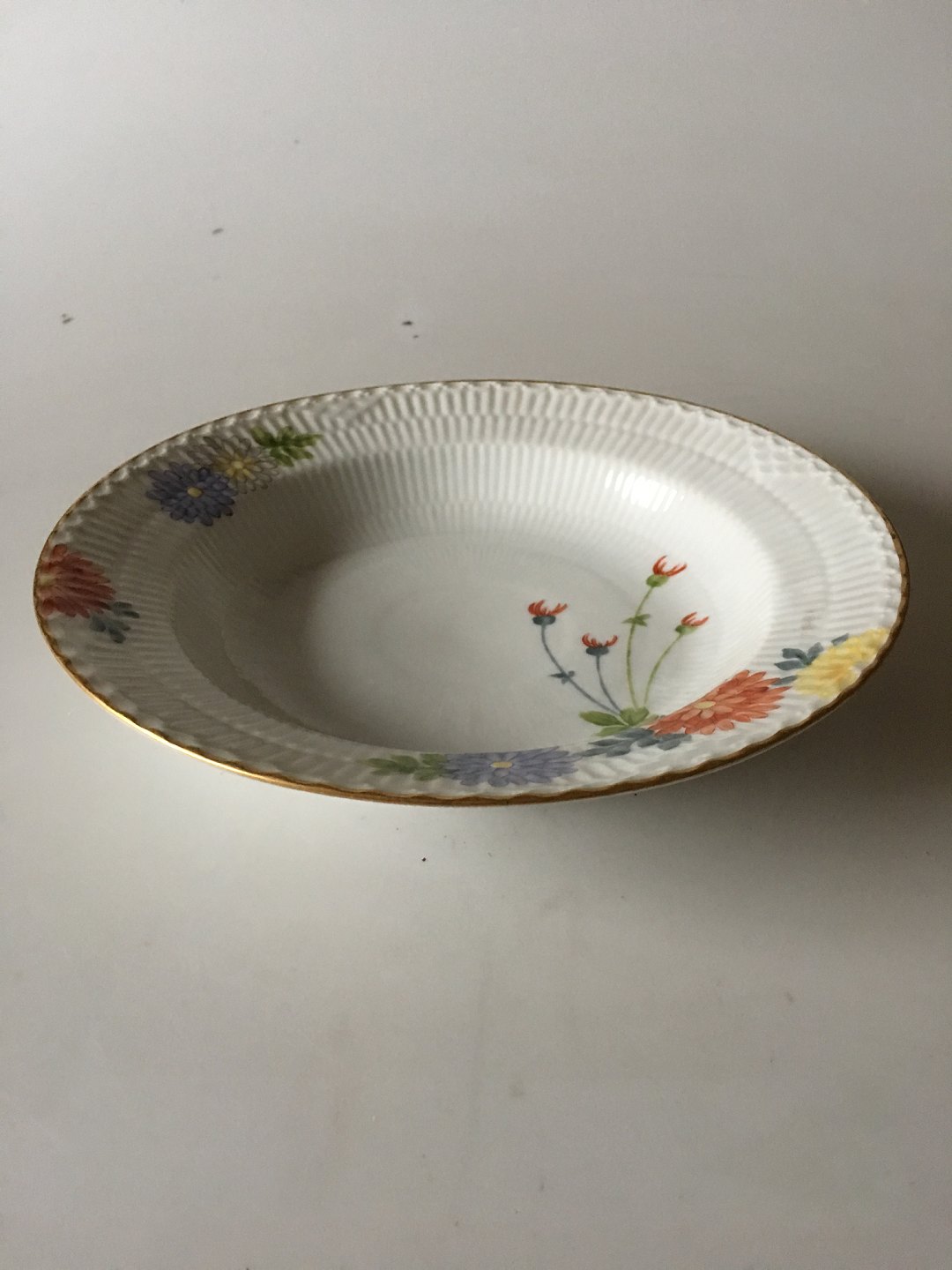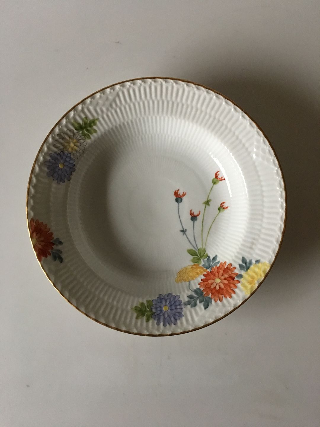 Royal Copenhagen Stel No 93 Hvid Halvblonde m. Blomster og Guldkant Dyb Suppetallerken. 24.5 cm. I god hel stand uden ridser. Guldet har lidt slid. Sjældent stel fra 1894-1898. Håndmalet