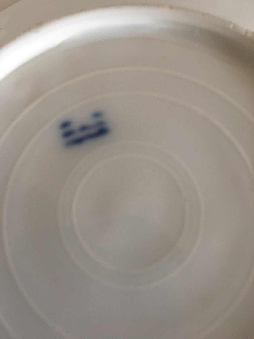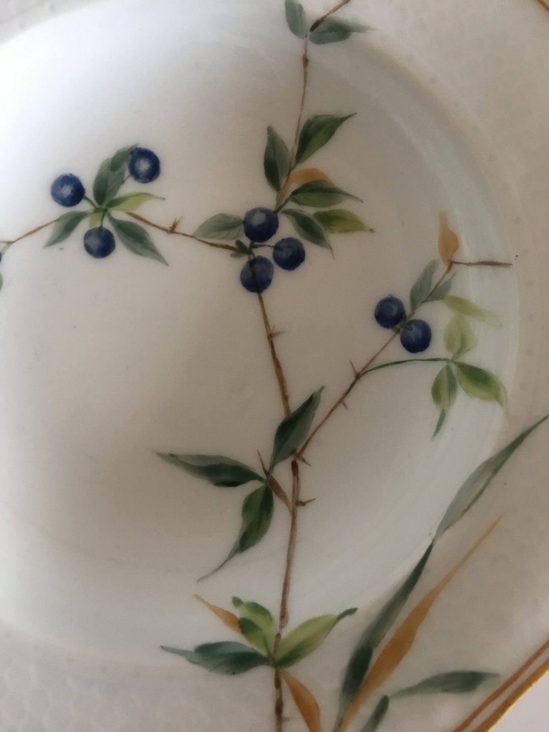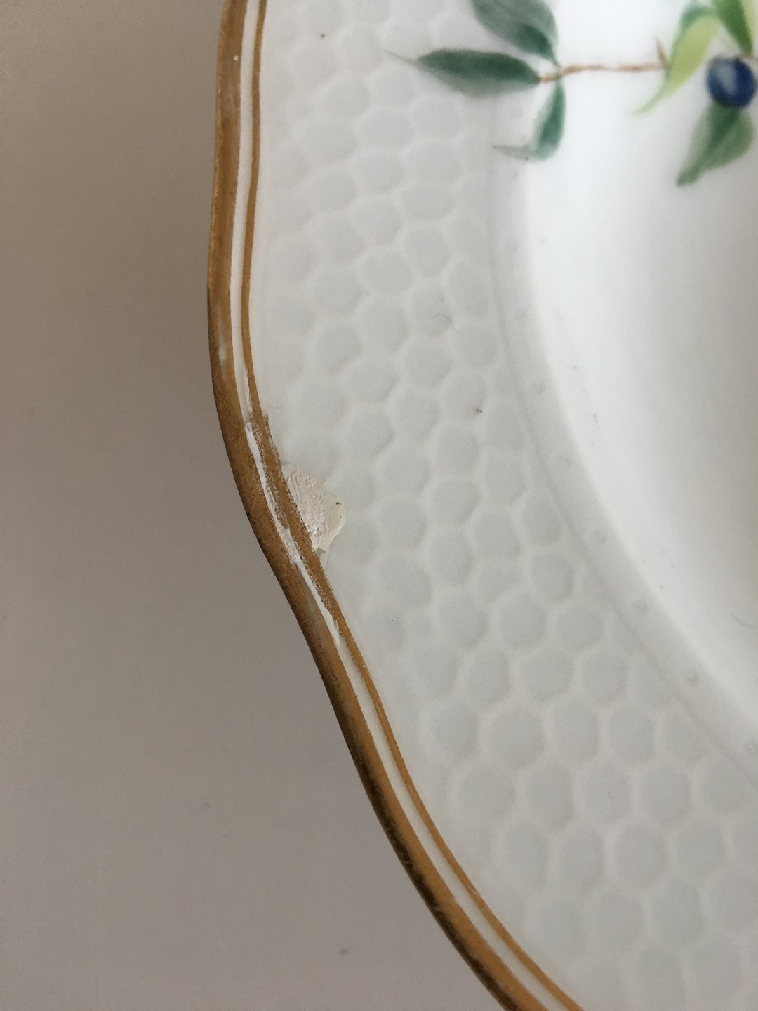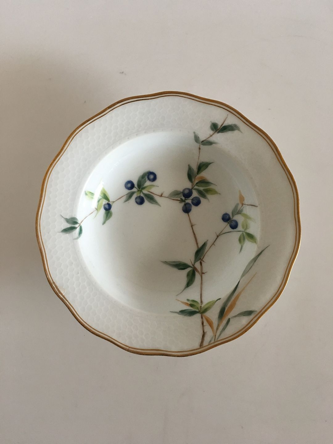 Royal Copenhagen Stel No 166 Dyb Tallerken med Håndmalede Blomster og Guldkant. 21 cm. Antik, Har en reparation på kanten (se billede). Ellers i god stand.