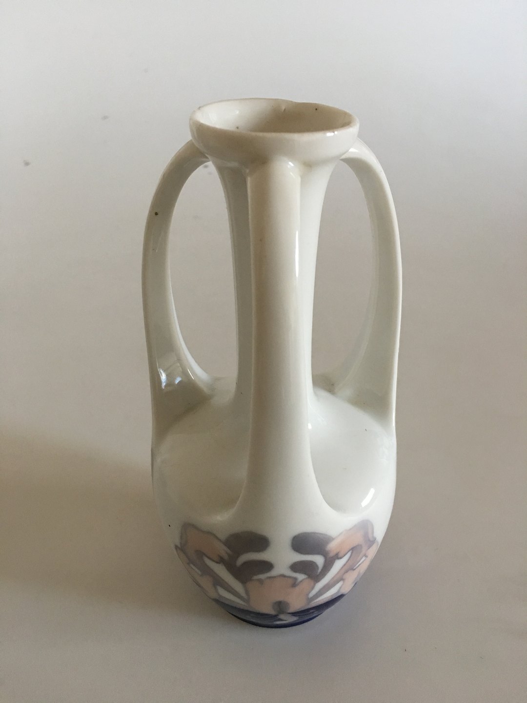 Royal Copenhagen Art Nouveau Vase med Tre Hanke No 290/60B. Med tang motiv 18 cm Høj. 2. Sortering. Har en lille skævhed på vasens top.