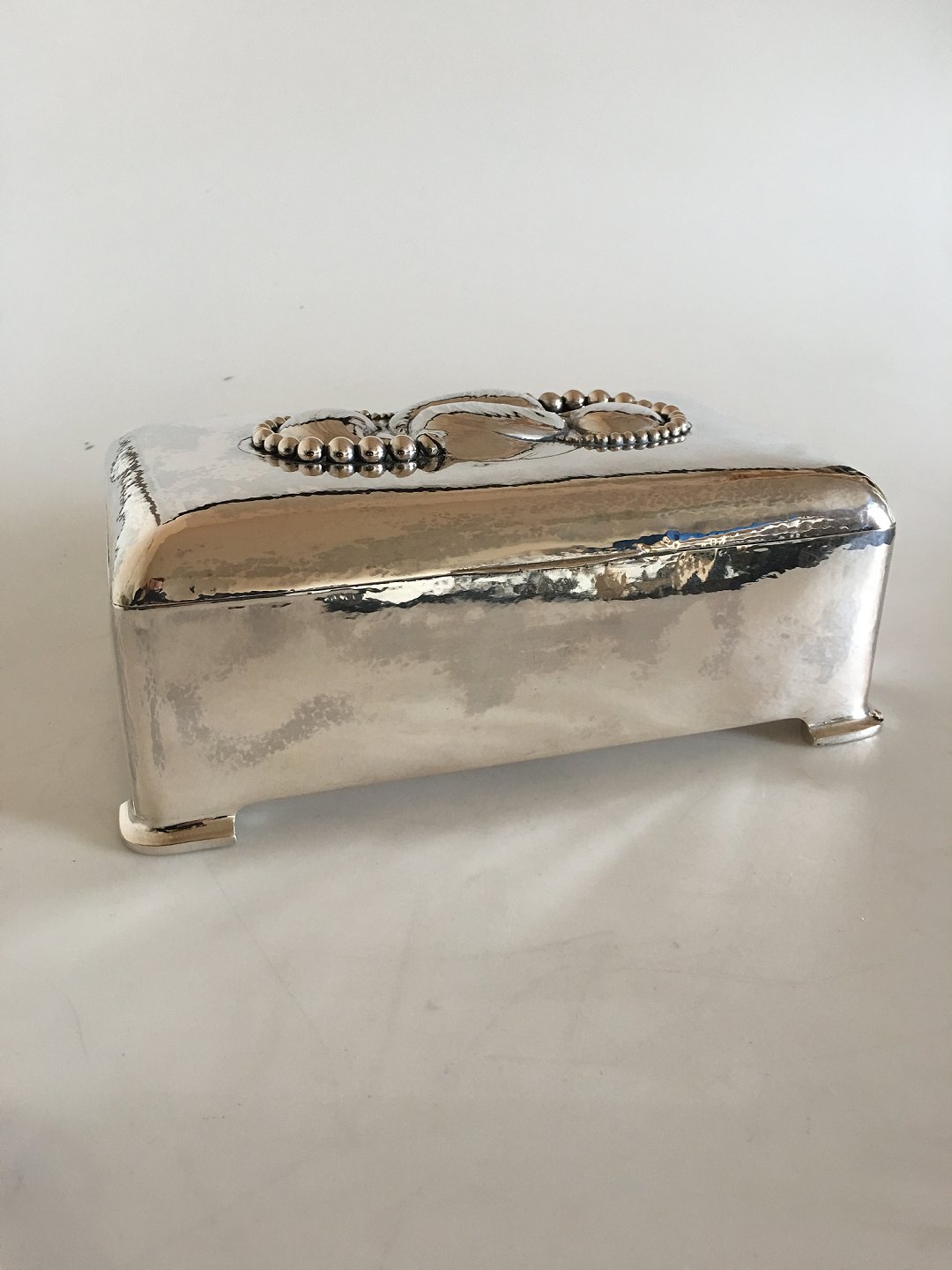 Large Evald Nielsen Silver Box. Silver Ornament with Shell Forms and whole Silver Pearls. Measures 15 x 24.5 cm (5 29/32" x 9 41/64"). 9 cm H 3 35/64"). Weighs 1155 grams / 40.88 oz. In beautiful condtition.