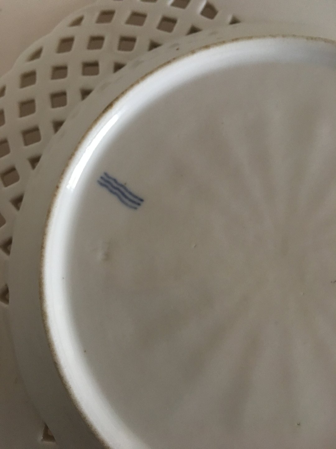 Royal Copenhagen Antik Hvid Tallerken 1790-1810 med Flettet Gennembrudt Kant. 24 cm Ø. I fin hel stand.