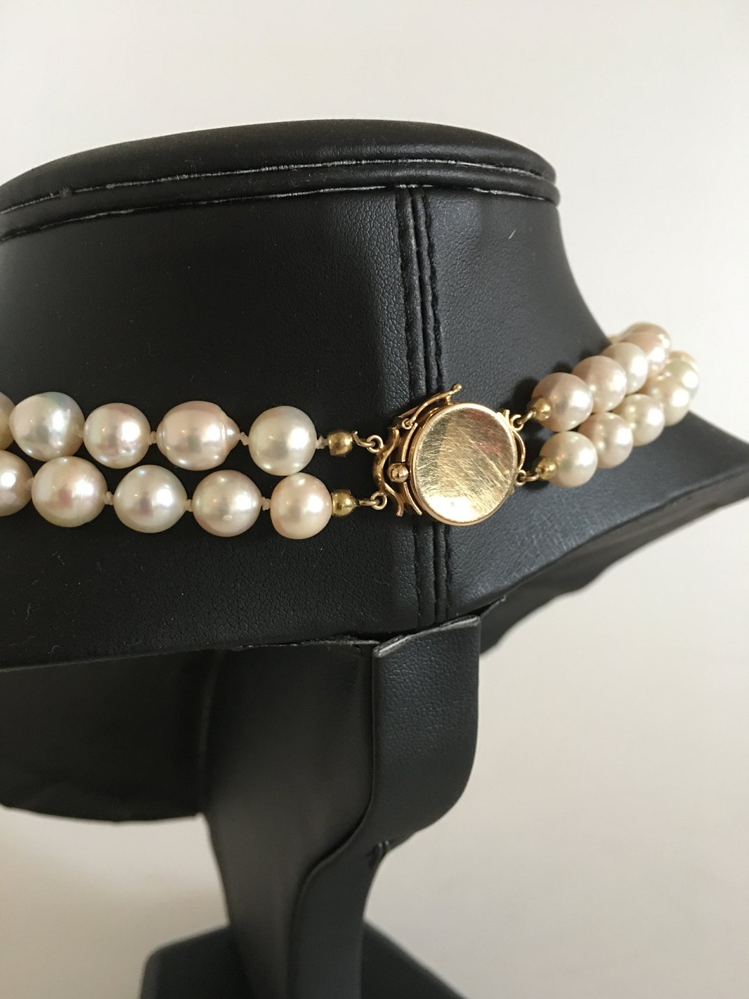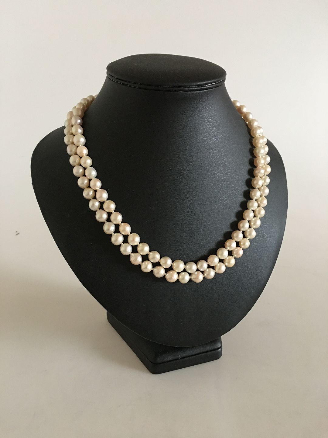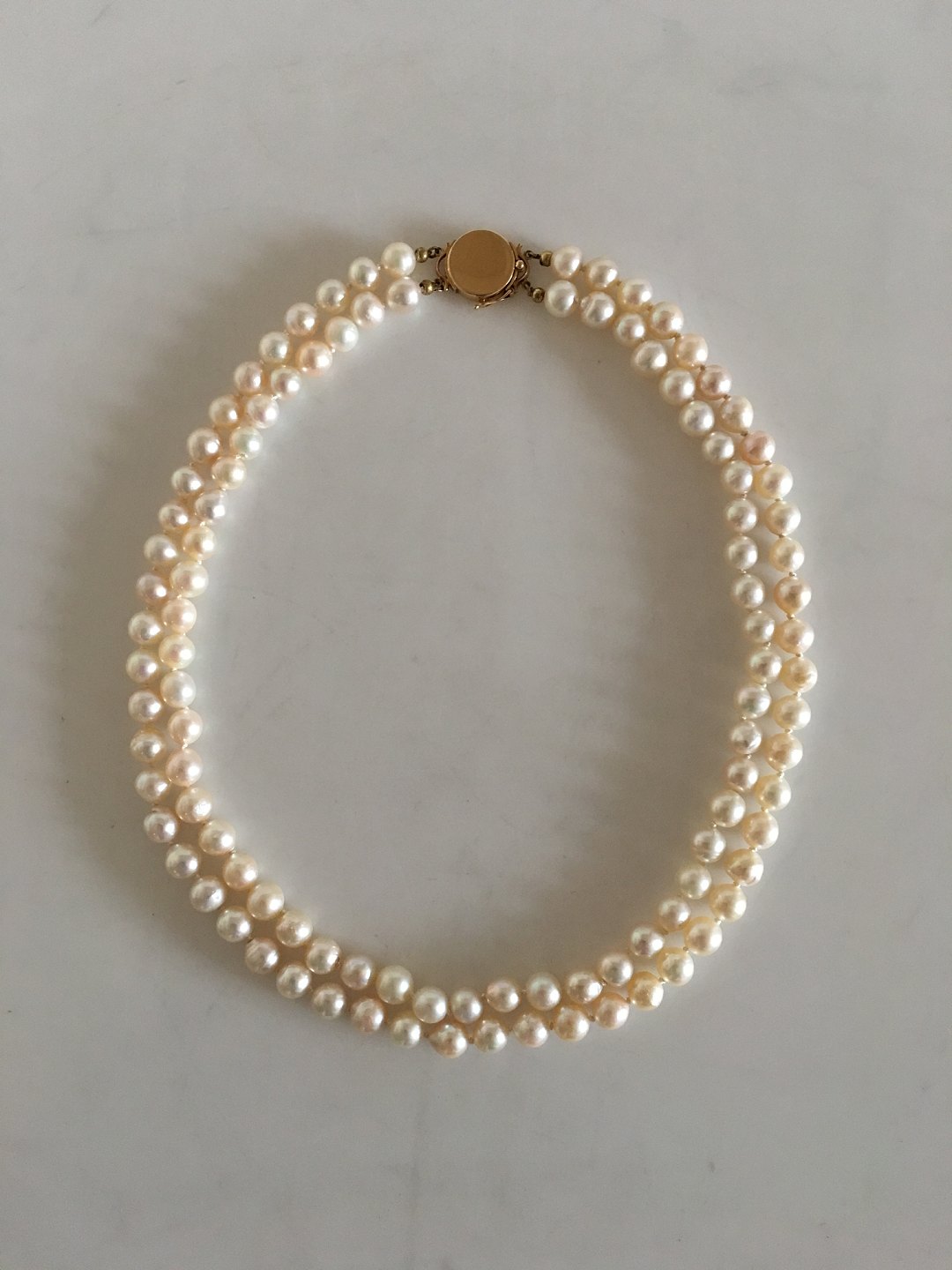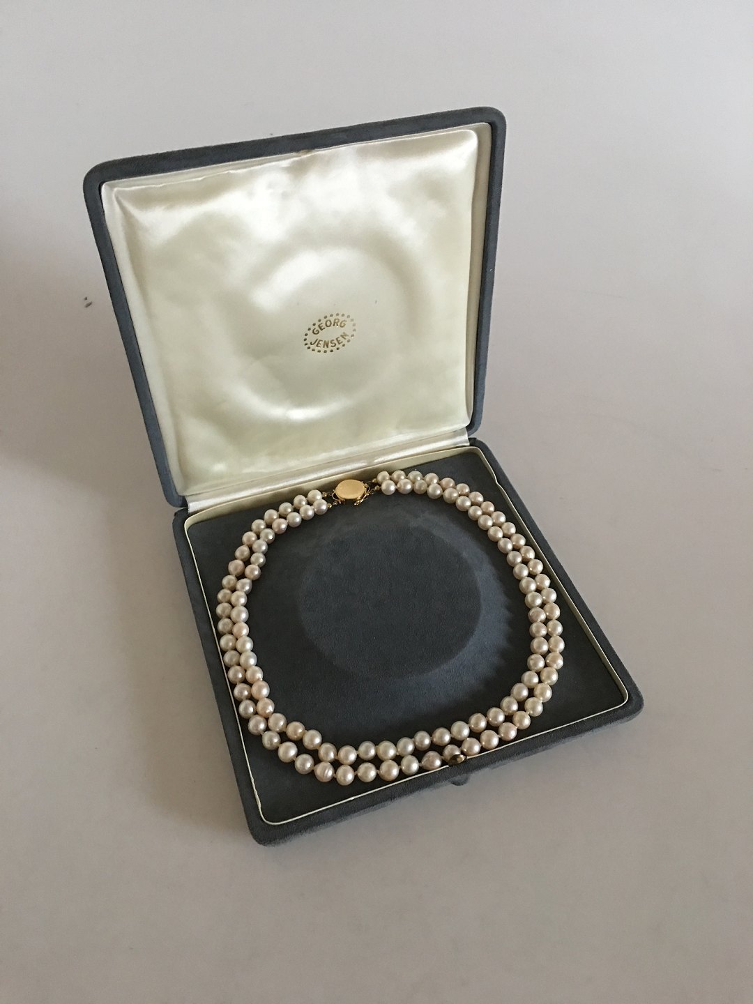 Georg Jensen Perlehalskæde med to Rækker og 18K Guld Lås No 1093. 50 cm L. Vejer 93 gram. Produceret efter 1945. I fin stand.