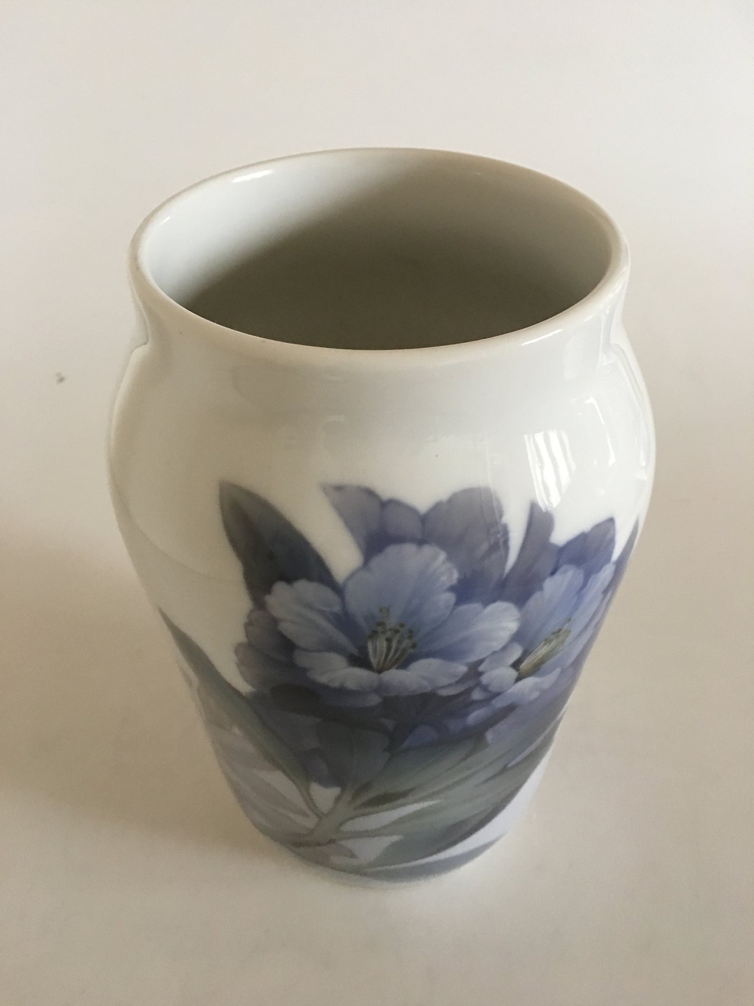 Royal Copenhagen Art Nouveau Vase No 845/1217 med Blå Blomstermotiv (Rhododendron). 25 cm Høj. 1. Sortering. I perfekt stand.