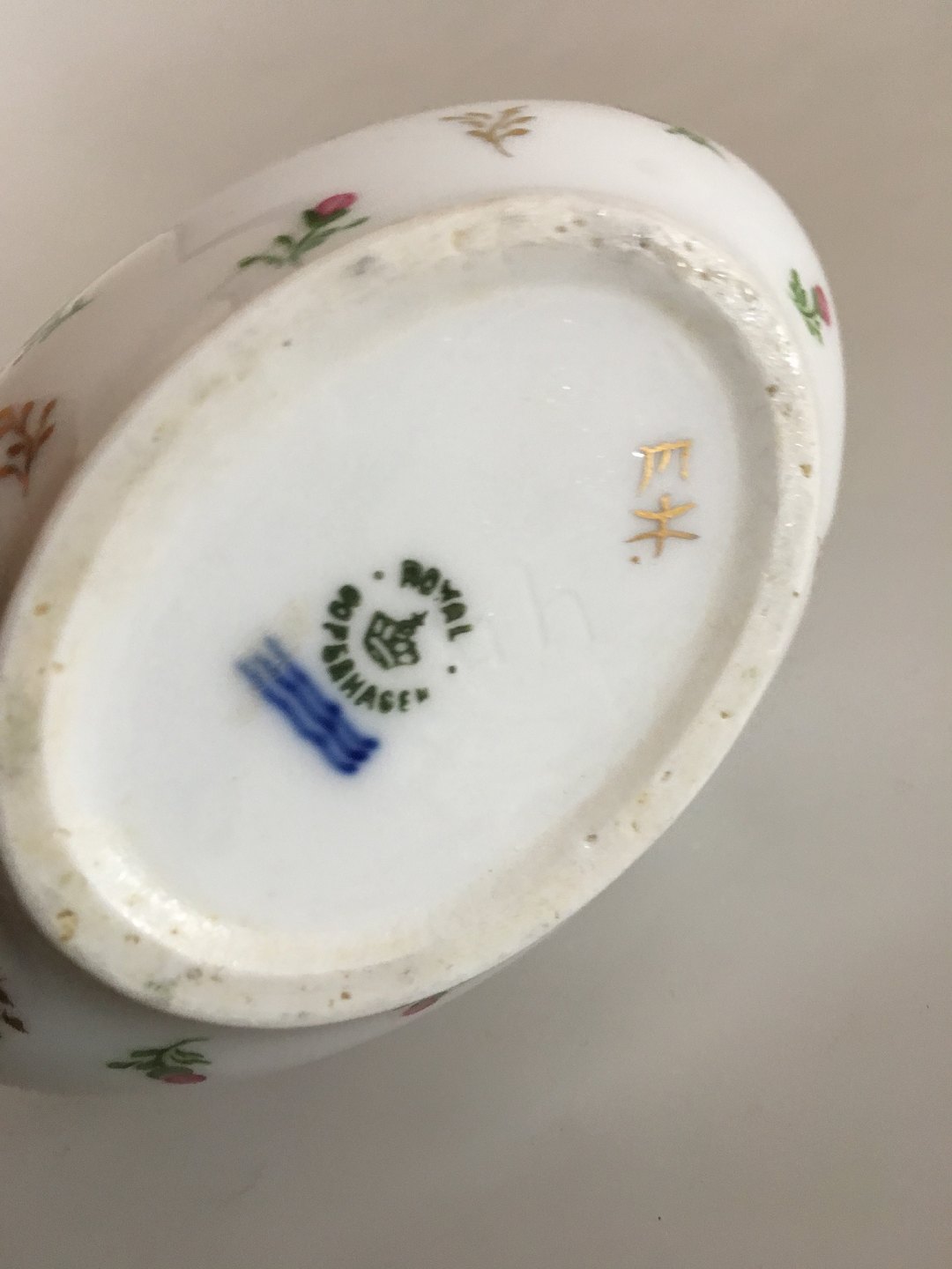 Royal Copenhagen Art Nouveau Smørkande. Med Rosenknopper og Guldkant. Guldet har lidt slid, ellers i fin hel stand. 12 cm L.