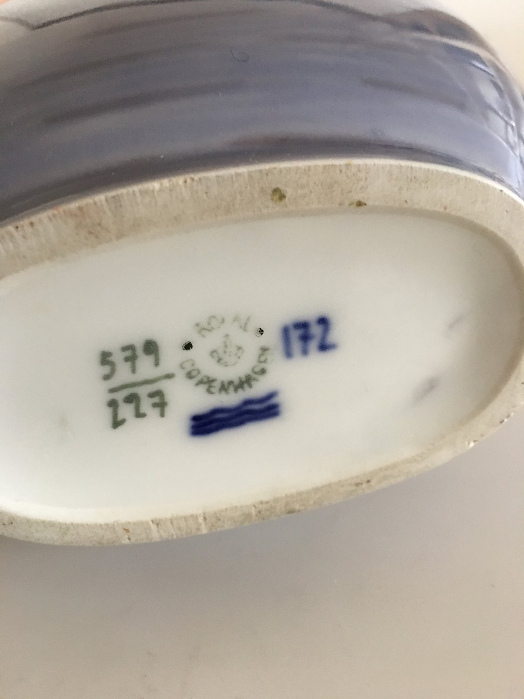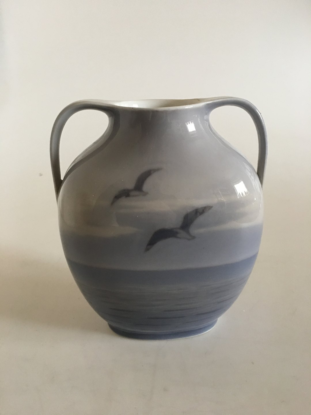 Royal Copenhagen Vase med To Hanke No 579/227 med Skibsmotiv. 1. Sortering. I fin hel stand. 17 cm Høj. Ca. 16 cm Bred.