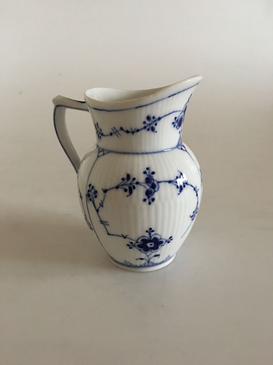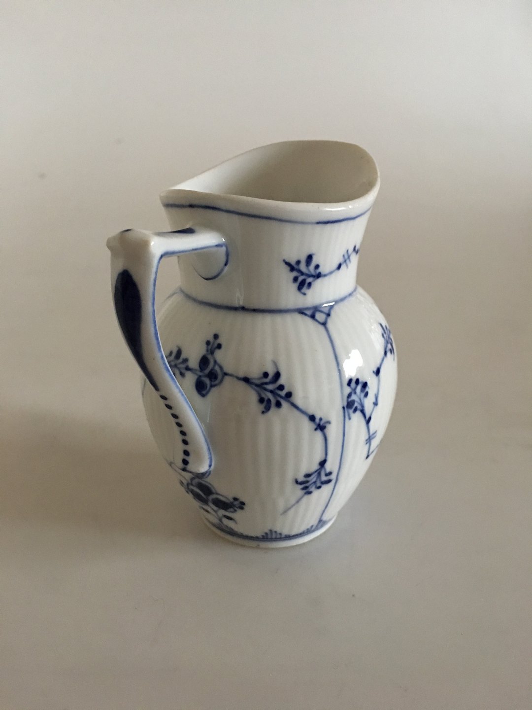 Royal Copenhagen Musselmalet Riflet Flødekande No. 60. Måler 10 cm / 3.94 in. 1. Sortering.
