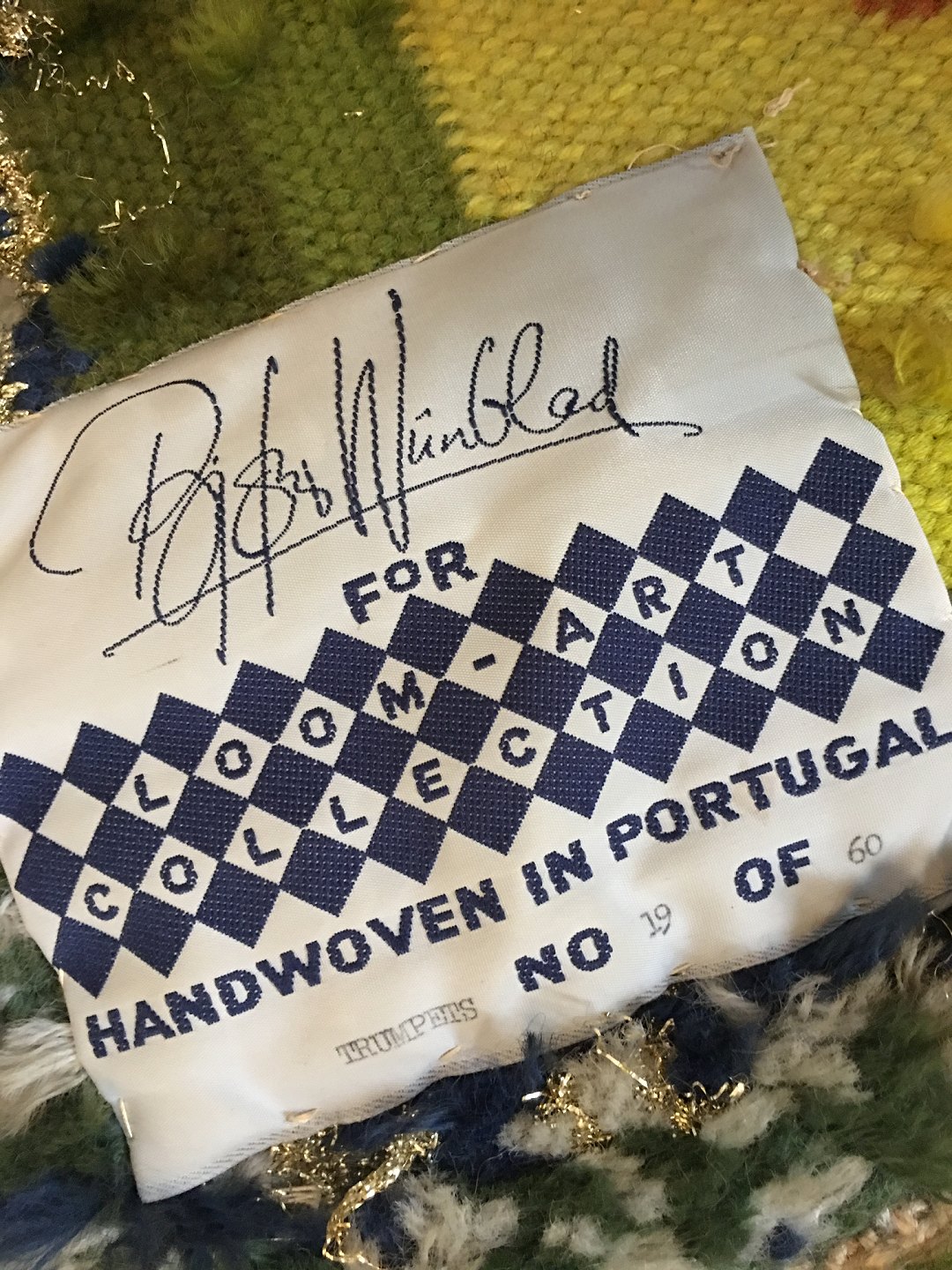 Bjørn Wiinblad Vægtæppe 105 x 105 cm. Håndvævet i Portugal No 19 ud af 60. I lugtfri fin stand. Fra 1976