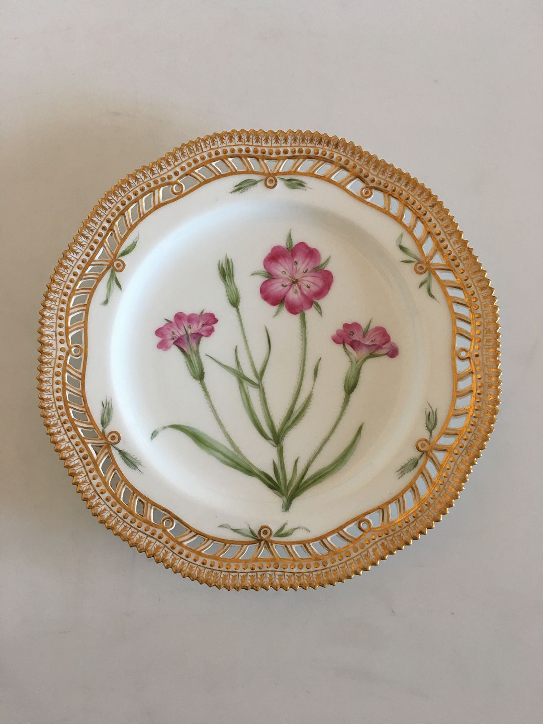 Royal Copenhagen Flora Danica Frokosttallerken med Gennembrudt Kant No 3554. 22.5 cm Ø. Latinsk Navn: Agrostemma Githago (Almindelig Klinte). Fra 1894-1900
