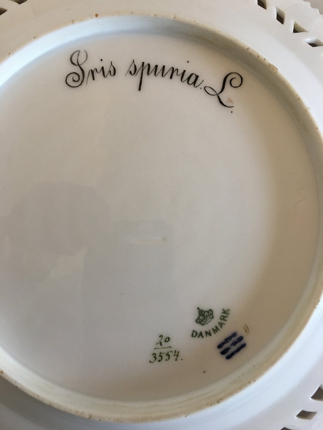 Royal Copenhagen Flora Danica Luncheon Plate No 3554 with Pierced Border. 22.5 cm dia (8 55/64"). Latin Name: Iris Spuria. From 1894-1900