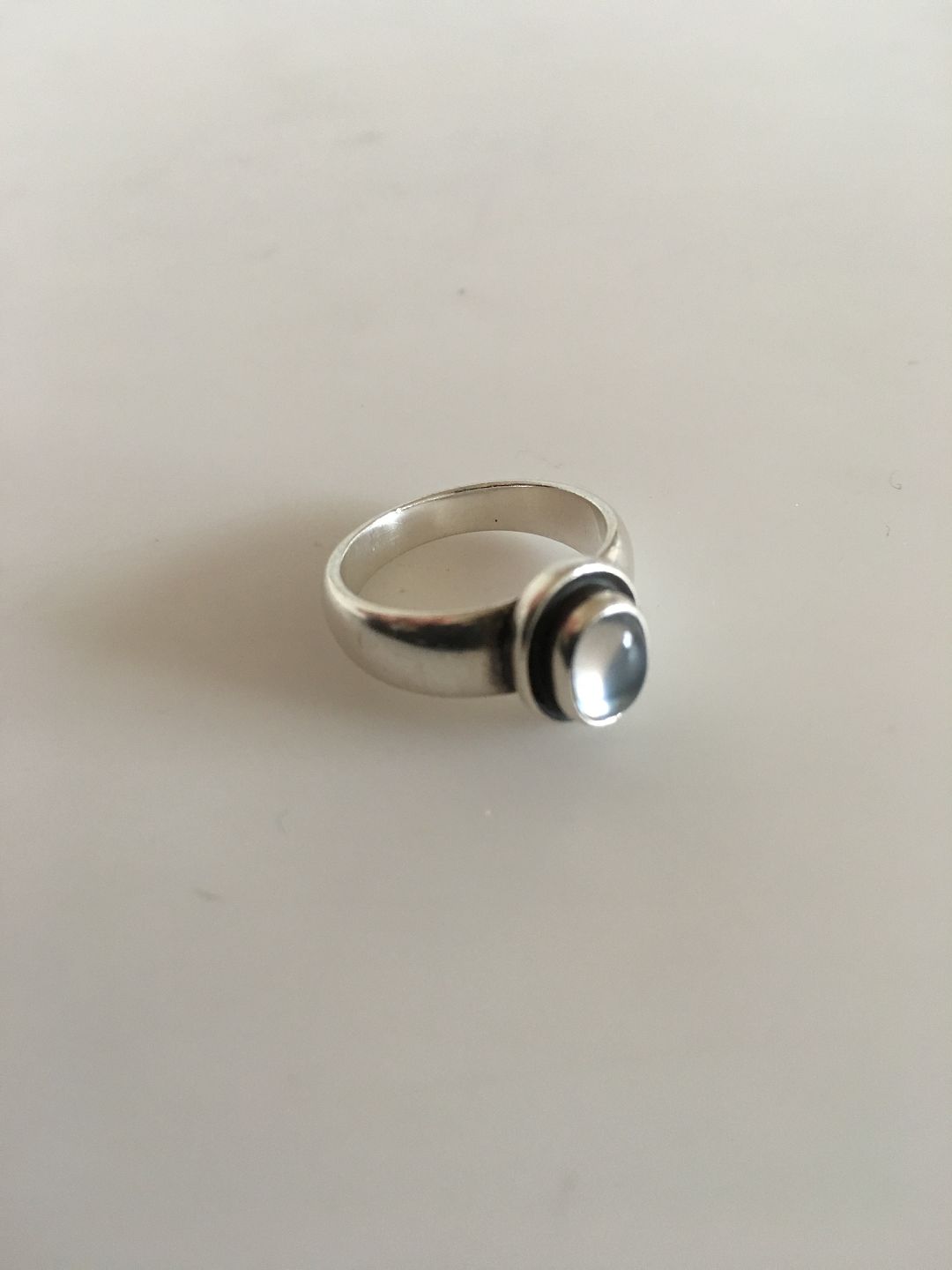 Georg Jensen Sterling Silver Ring No 46C with Clear Stone. From after 1945. Ring Size 51 / US 5 1/2. Weighs 4.8 g / 0.17 oz.