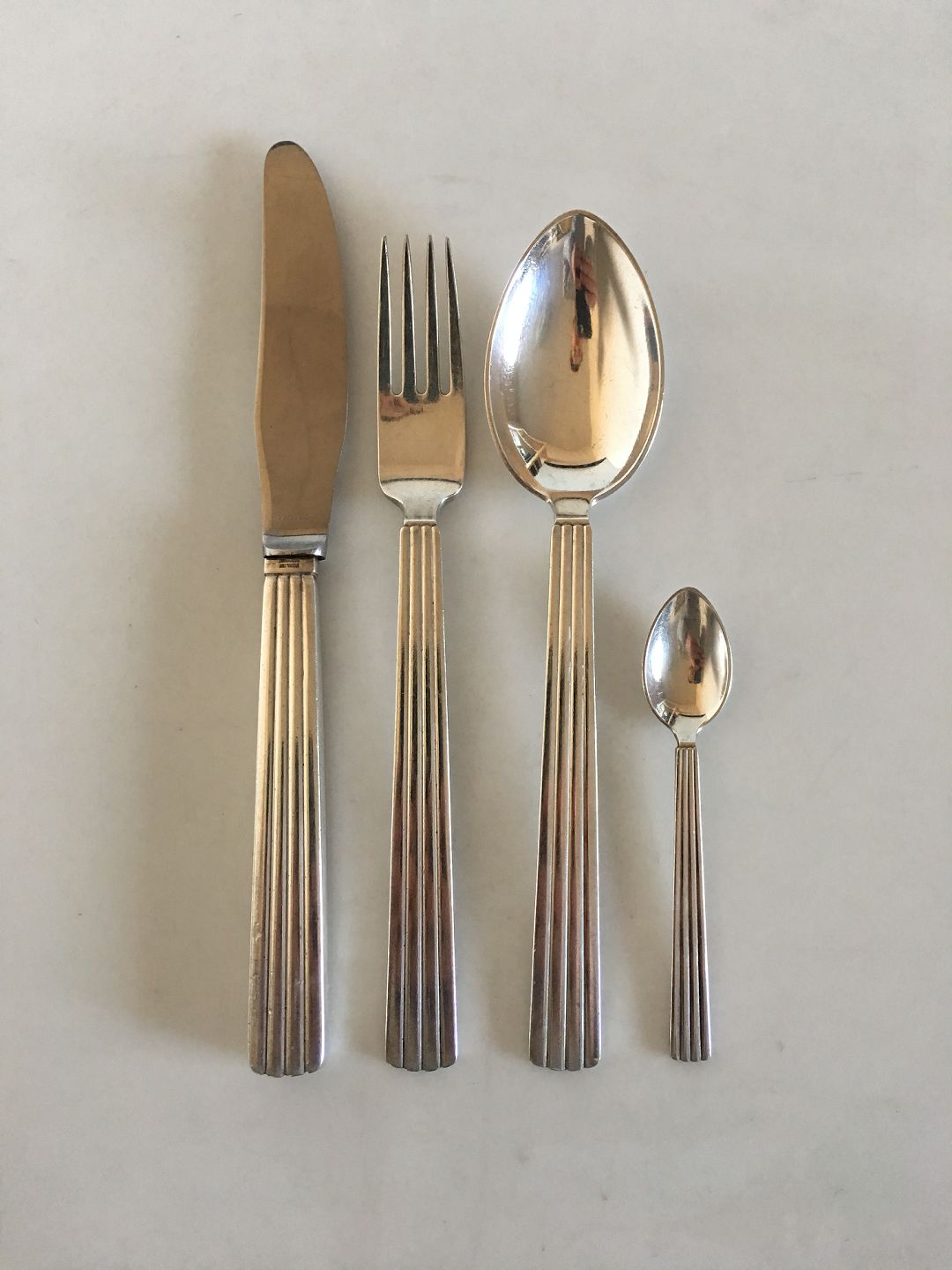 Georg Jensen Sterling Sølv Bernadotte Bestik Sæt til 12 Pers. Alle dele med GJ stempler fra 1933-1945. Sættet består af følgende dele;