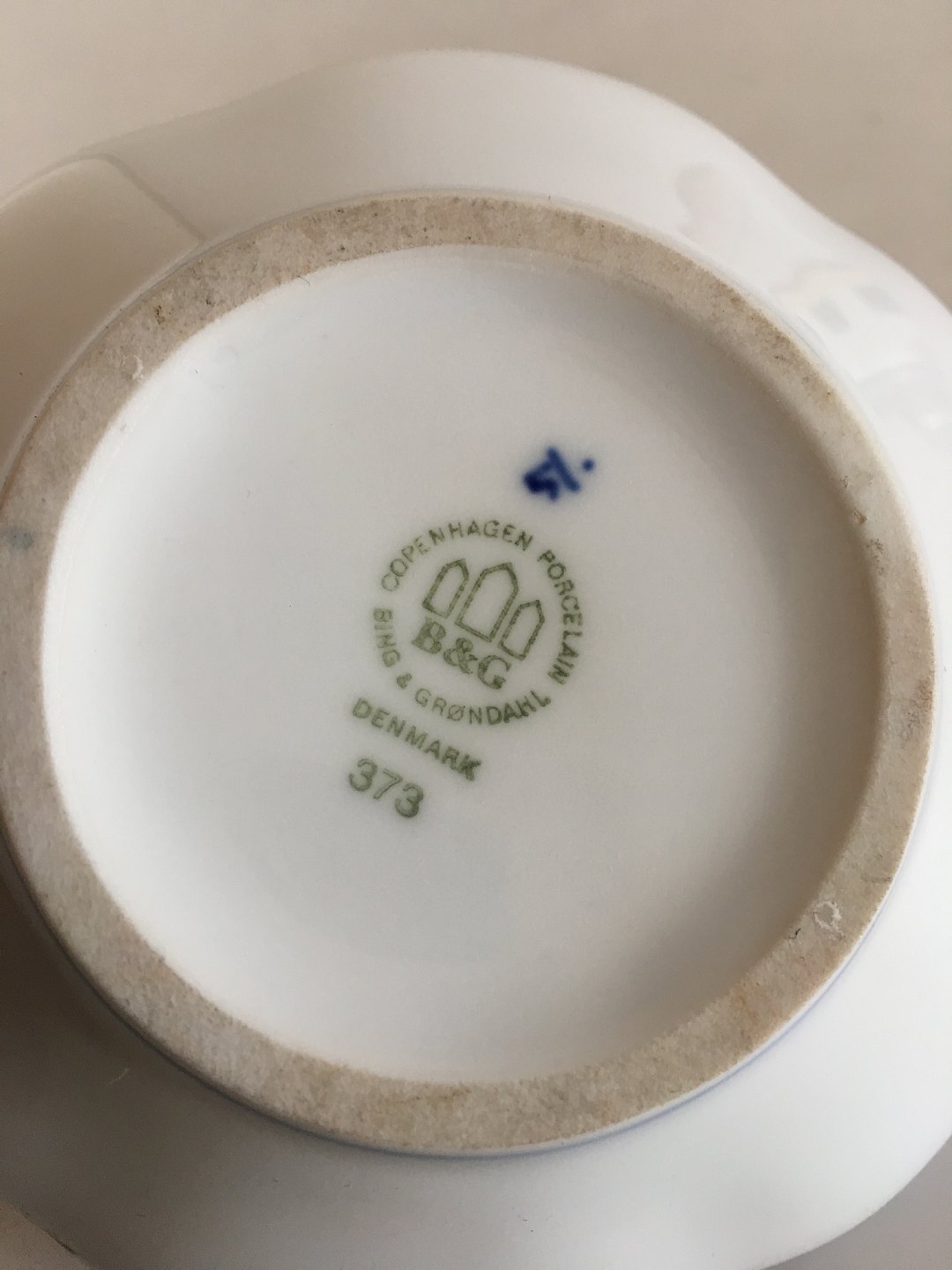 Bing & Grondahl Blue Painted Fluted Oil Lamp No 373. 12 cm dia. In perfect condition.