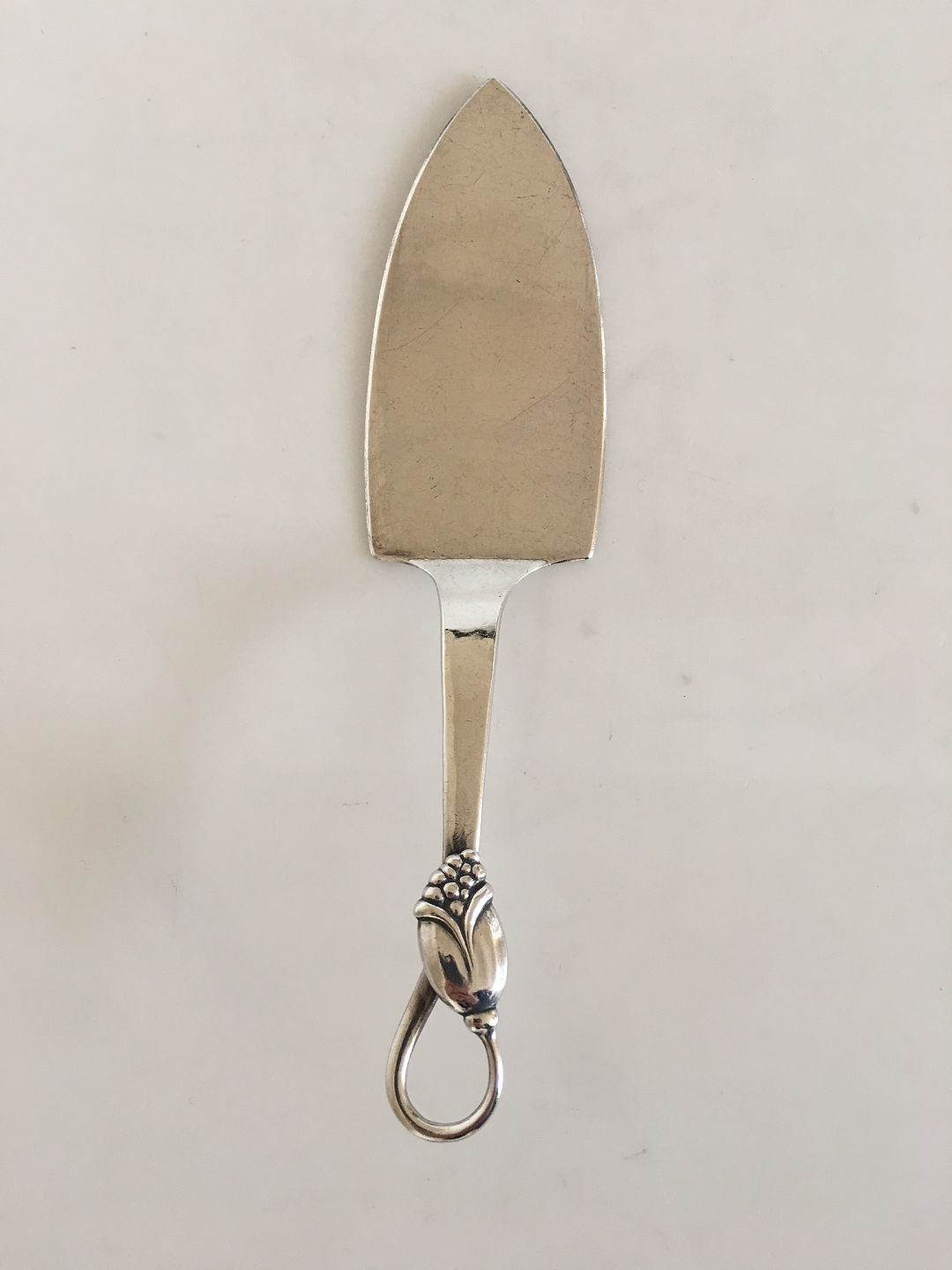 Jens Andersen Denmark Sterling Sølv Kagespade med Drue Ornamenteret Greb. 19.6 cm L.