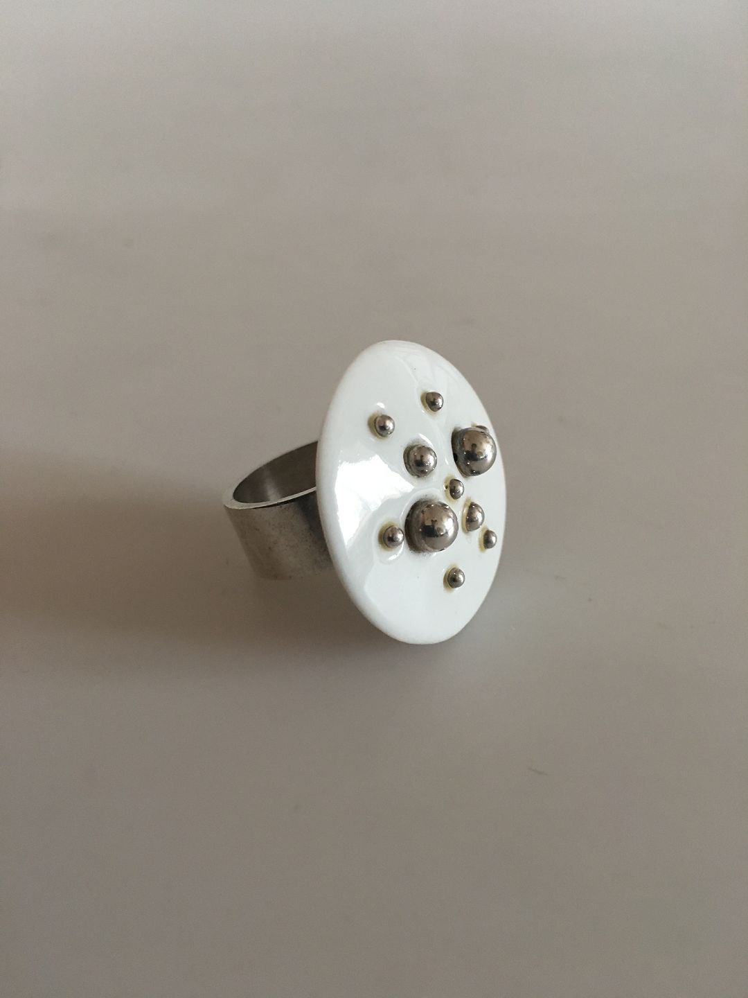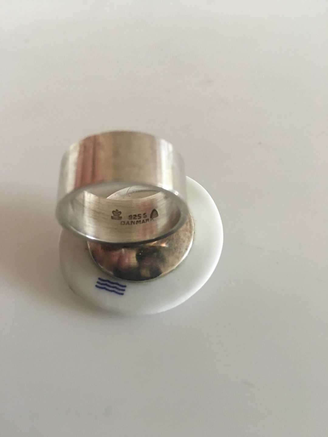 Anton Michelsen Sterling Sølv Ring med Royal Copenhagen Ornament i Porcelæn. Str. 53. I fin stand uden skår i porcelænsdelen.