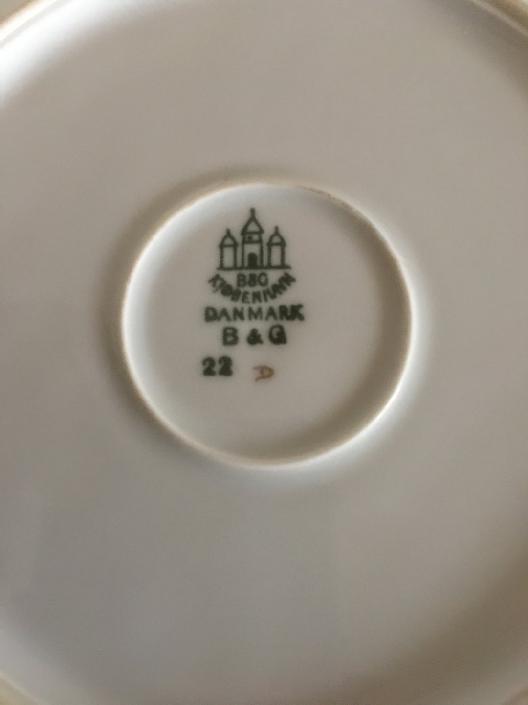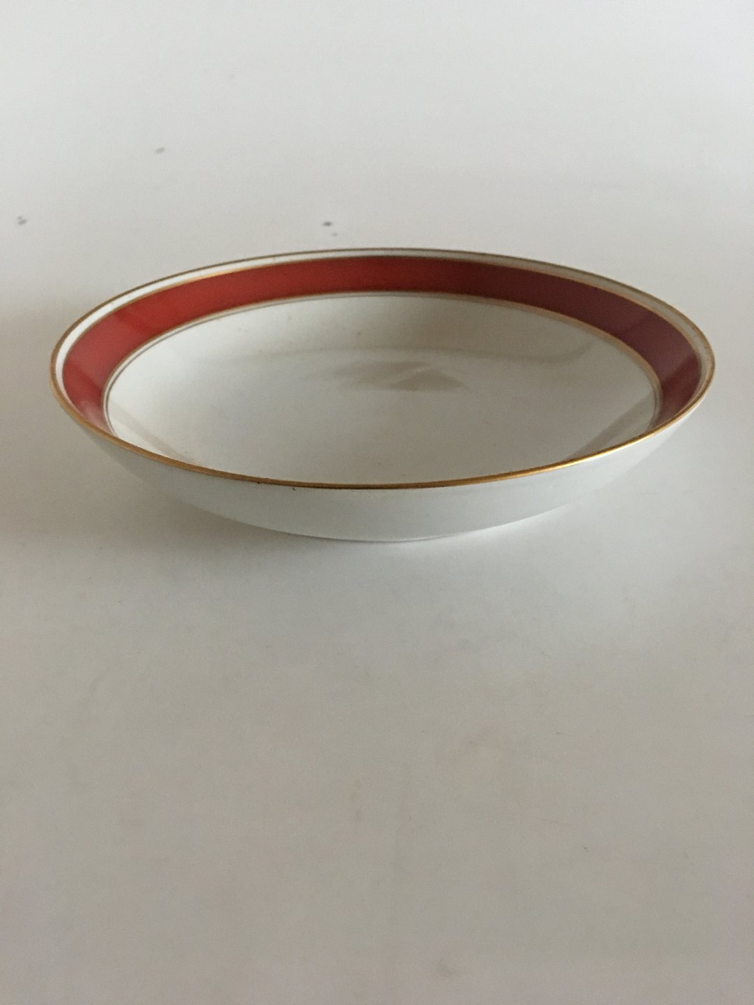 Bing & Grøndahl Egmont Dyb Tallerken / Skål No 22. Hvid med Vinrød Kant og Guldlinje. 20.5 cm Ø. I fin hel stand.