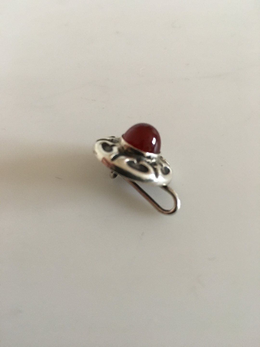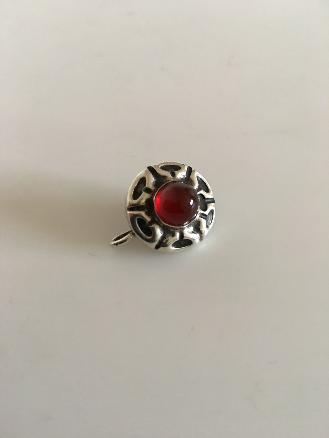 Georg Jensen Sølv Broche No 5 med Rødlig Sten, Tidlig. 826 Sølv med GJ stempler fra 1908-1914. Måler 1,5 cm Ø. Vejer 3,2 gram.