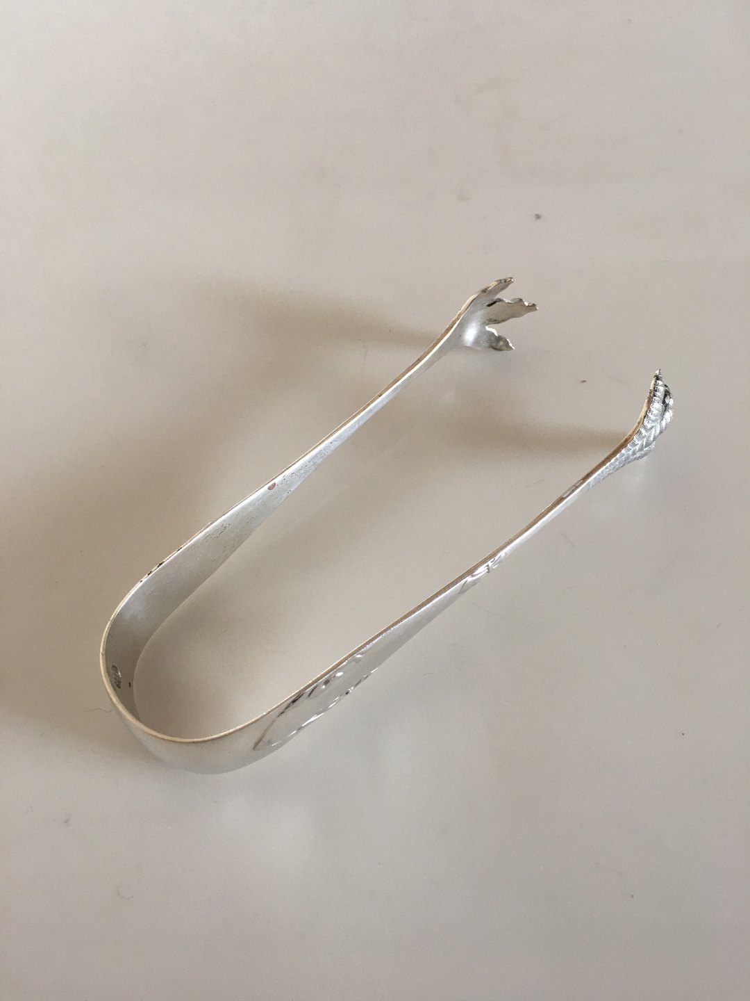 Delt Lilje Sølv Sukkertang. 11.5 cm L