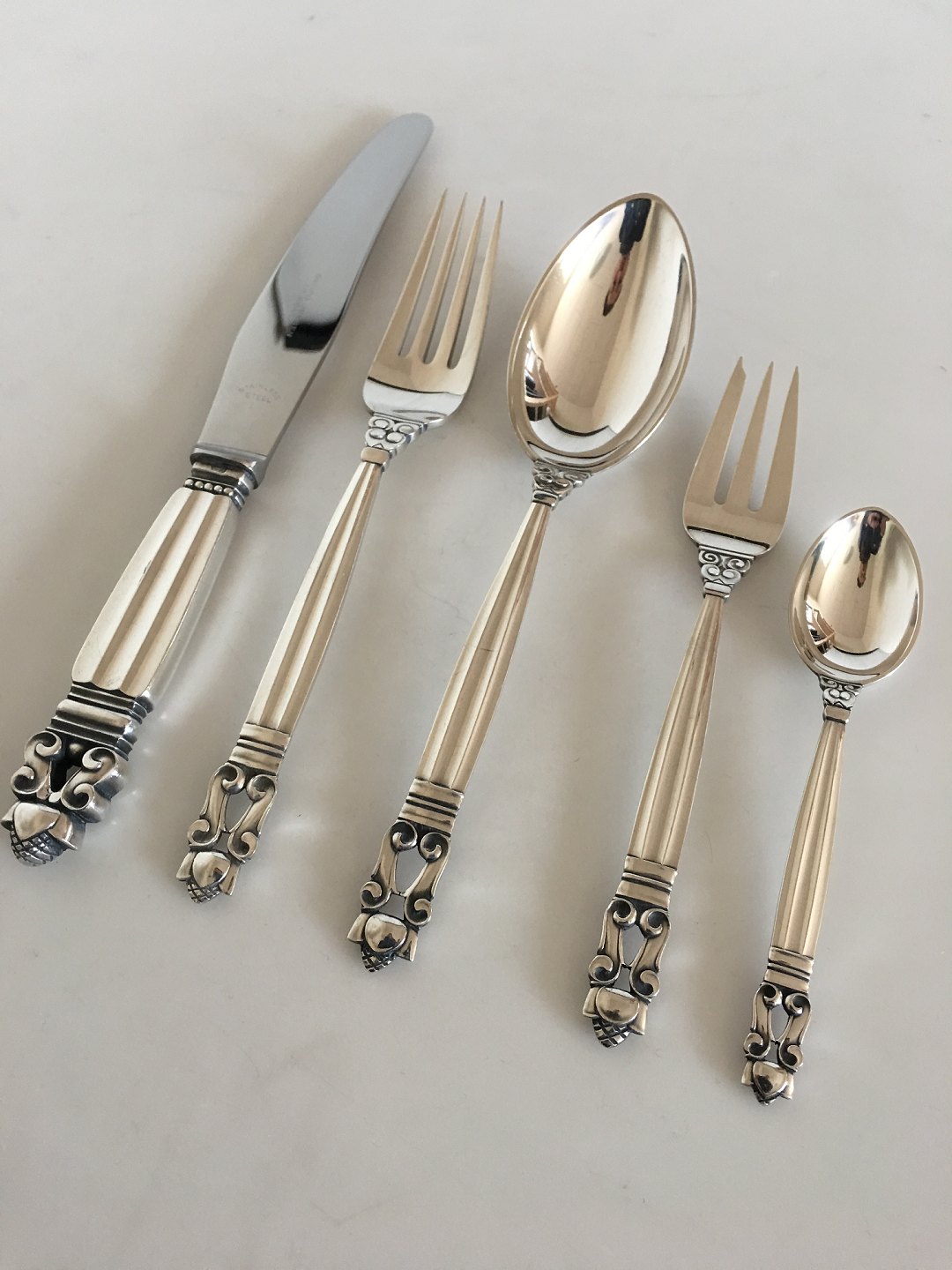 Georg Jensen Sterling Sølv Konge Frokost Bestik Sæt. 40 Dele. 8 Pers. Sættet består af følgende dele;