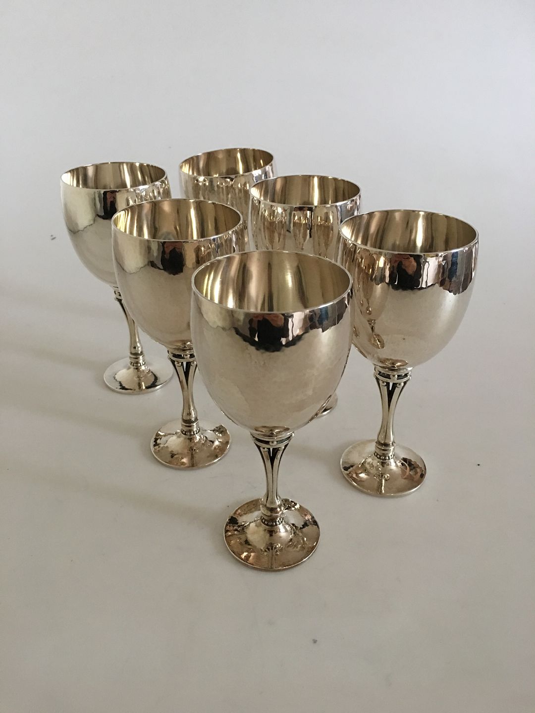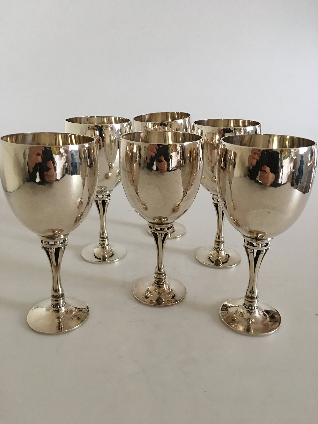 Georg Jensen Sterling Sølv Harald Nielsen Vinbæger no.532B (Hvidvin). Sæt på 6 stk. 14.5 cm H. 6.2 cm Ø. ét glas vejer 182 gram.
