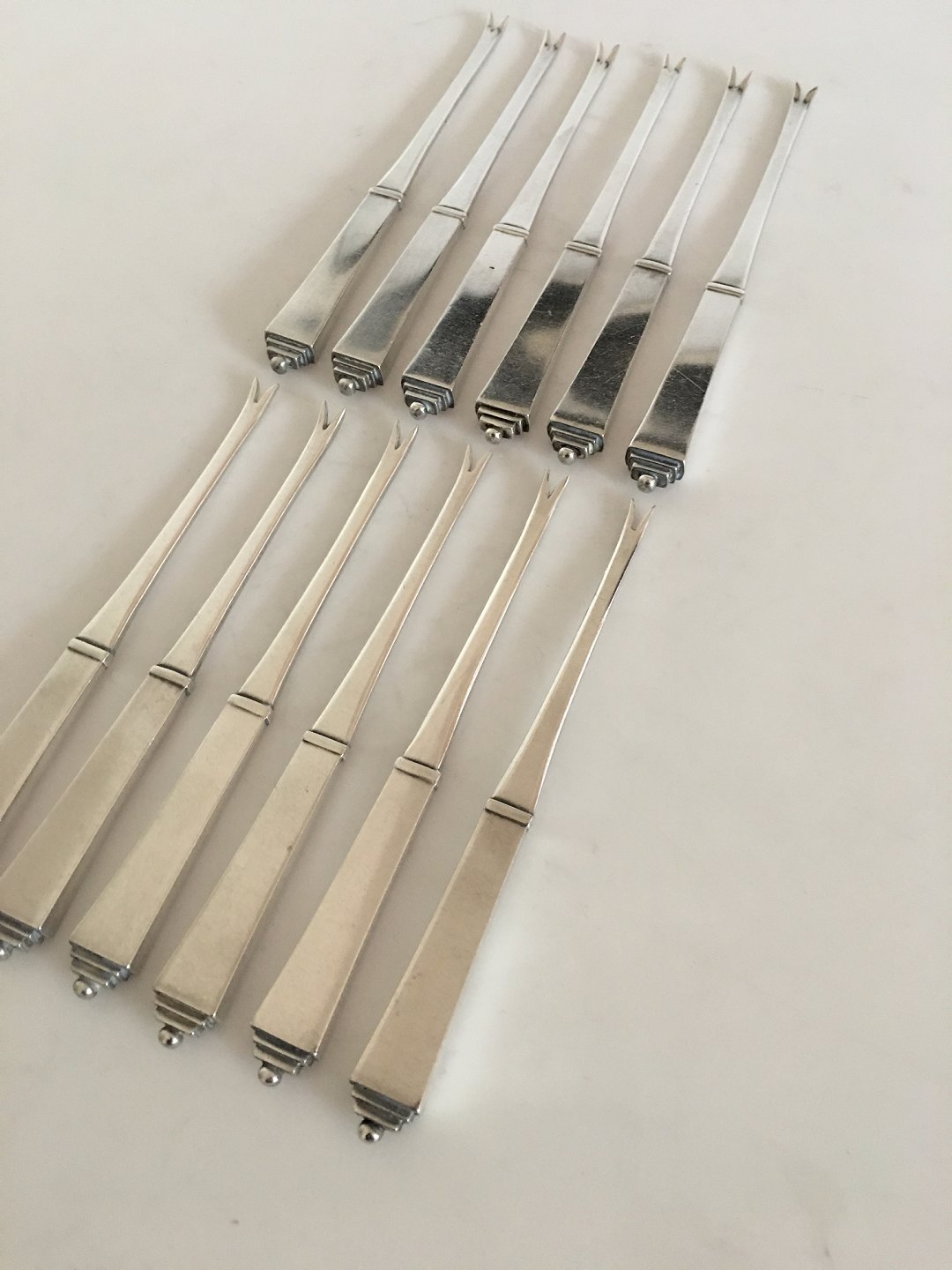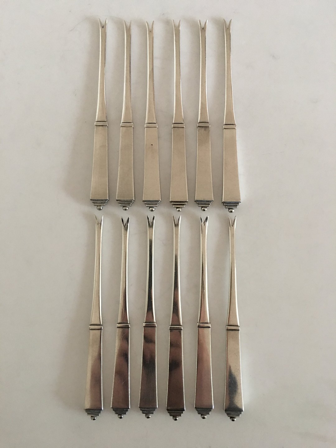 Georg Jensen Sterling Sølv Pyramid Set of 12 x Lobster Piks with vintage GJ Silver Hallmarks from the 1920s. Measures 15 cm / 5 29/32"