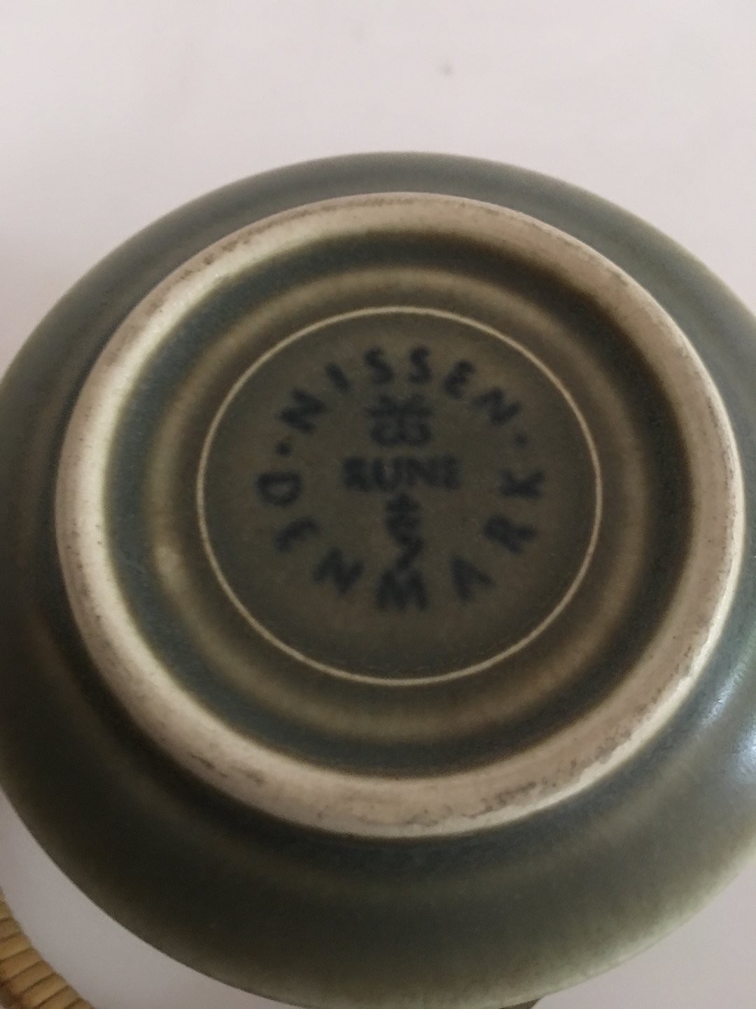 Bing og Grøndahl / Kronjyden Rune Stentøj Marmeladekrukke. Designet af Jens Quistgaard. Måler 7 cm x 9 cm / 2,75 in. x 3,54 in.