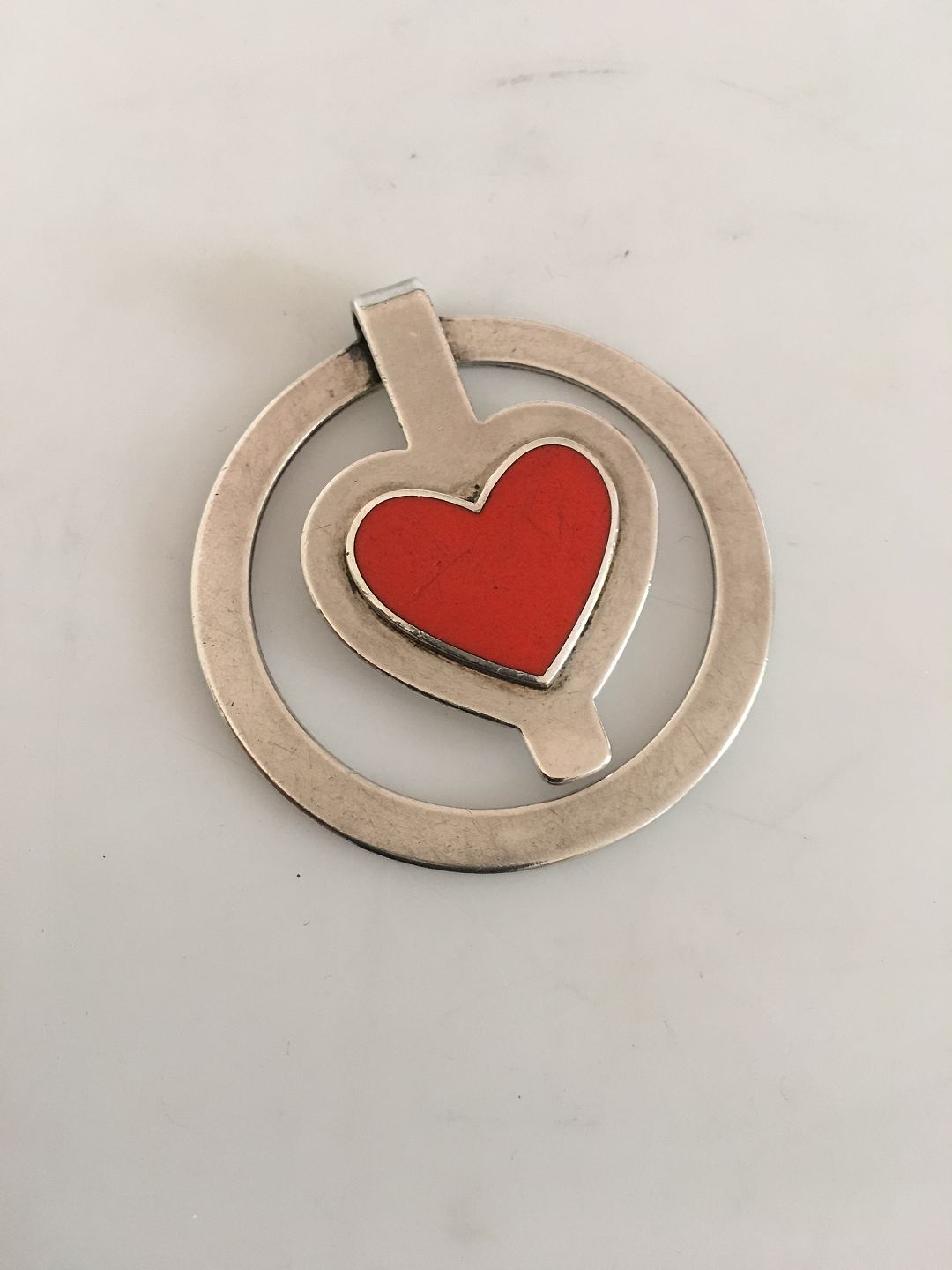 Georg Jensen Sterling Sølv Pengeklip No 390 med Rødt Hjerteformet Emaljeindlæg. Måler 4.9 cm dia. Vejer 22 gram.