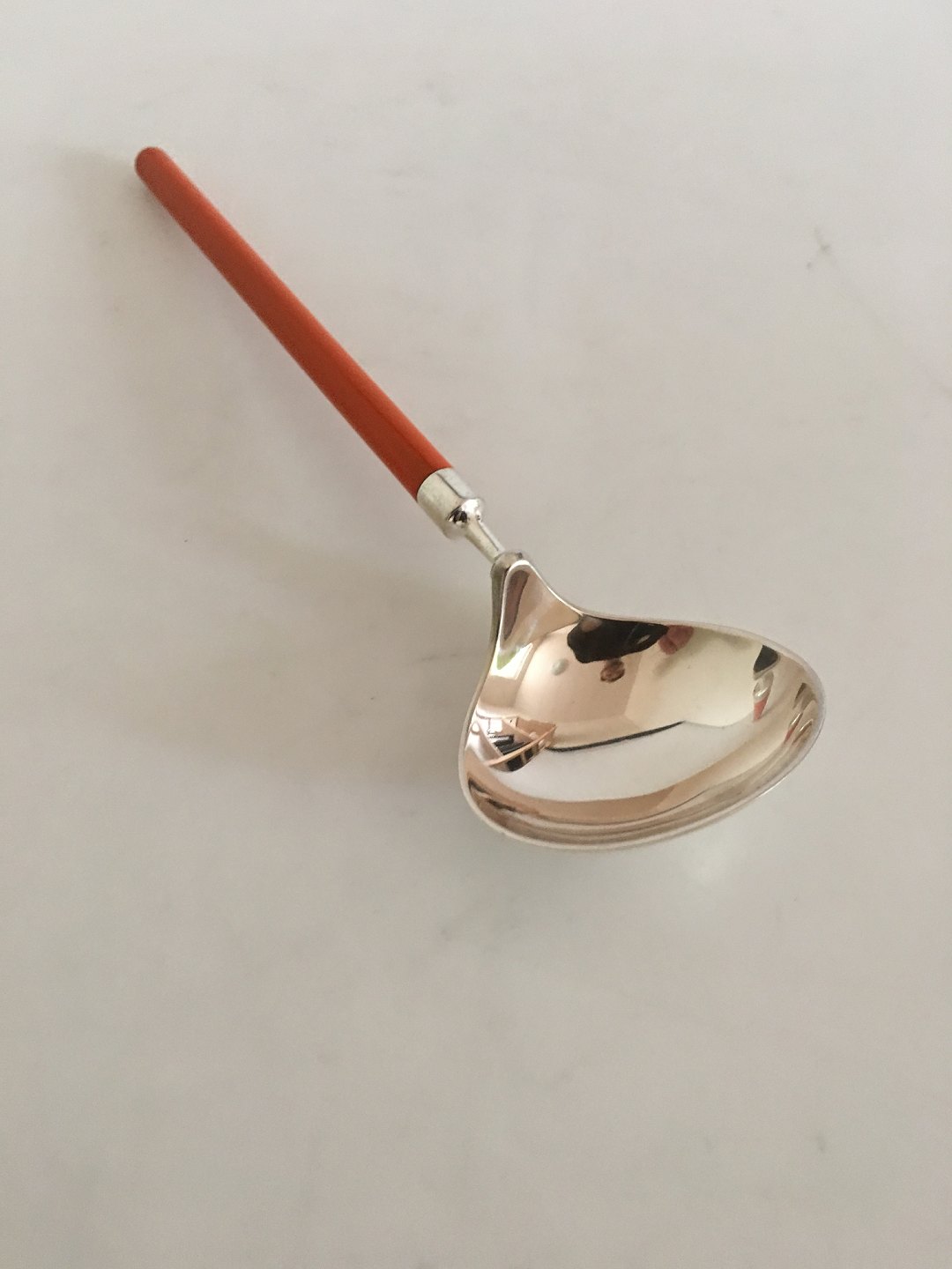 Hans Hansen Amalie Sterling Sølv Serveringsske med Orange Plast Håndtag. 21 cm L