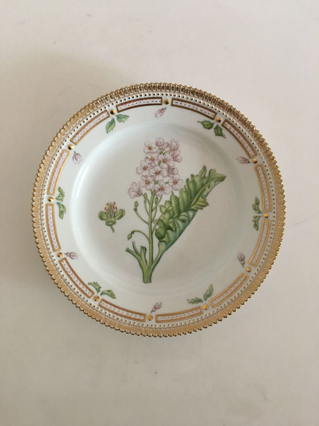 Royal Copenhagen Flora Danica Frokosttallerken no. 622. 22 cm. Latinsk Navn: Crambe Maritima (Strandkål). 1. Sortering. I perfekt stand